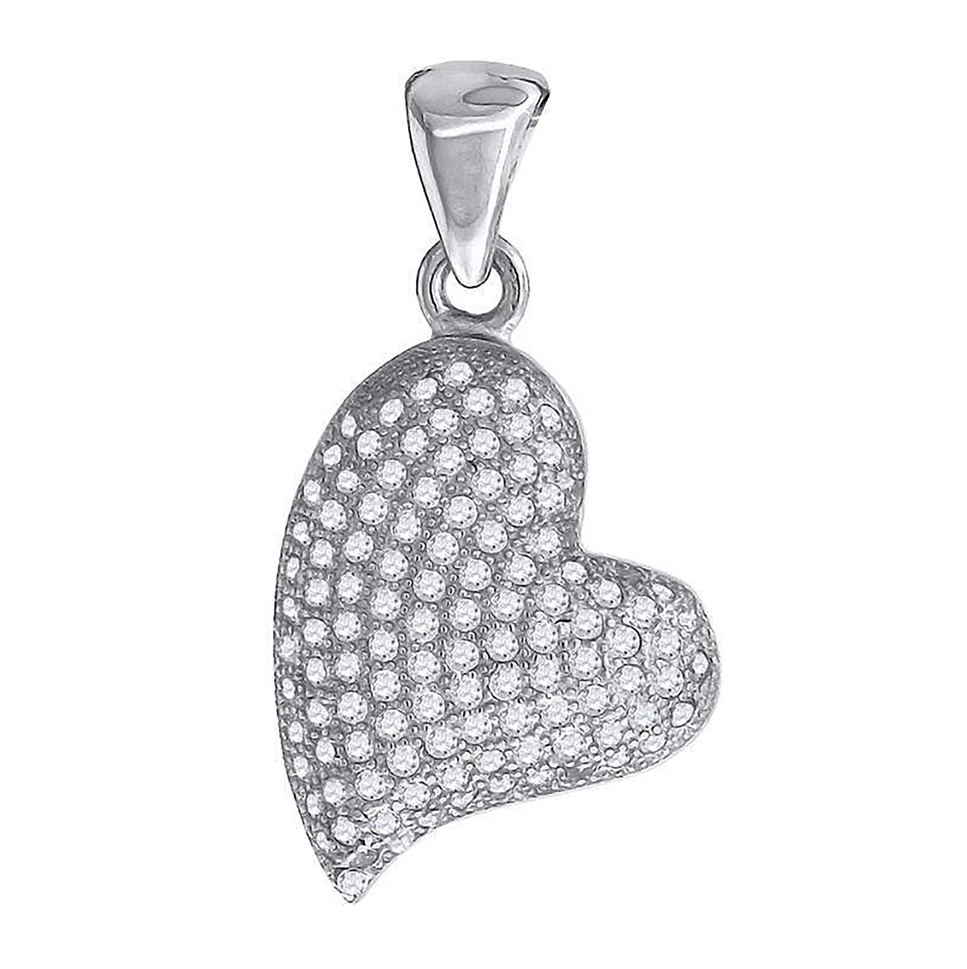 Sterling Silver Womens Cubic-Zirconia Heart Charm Pendant