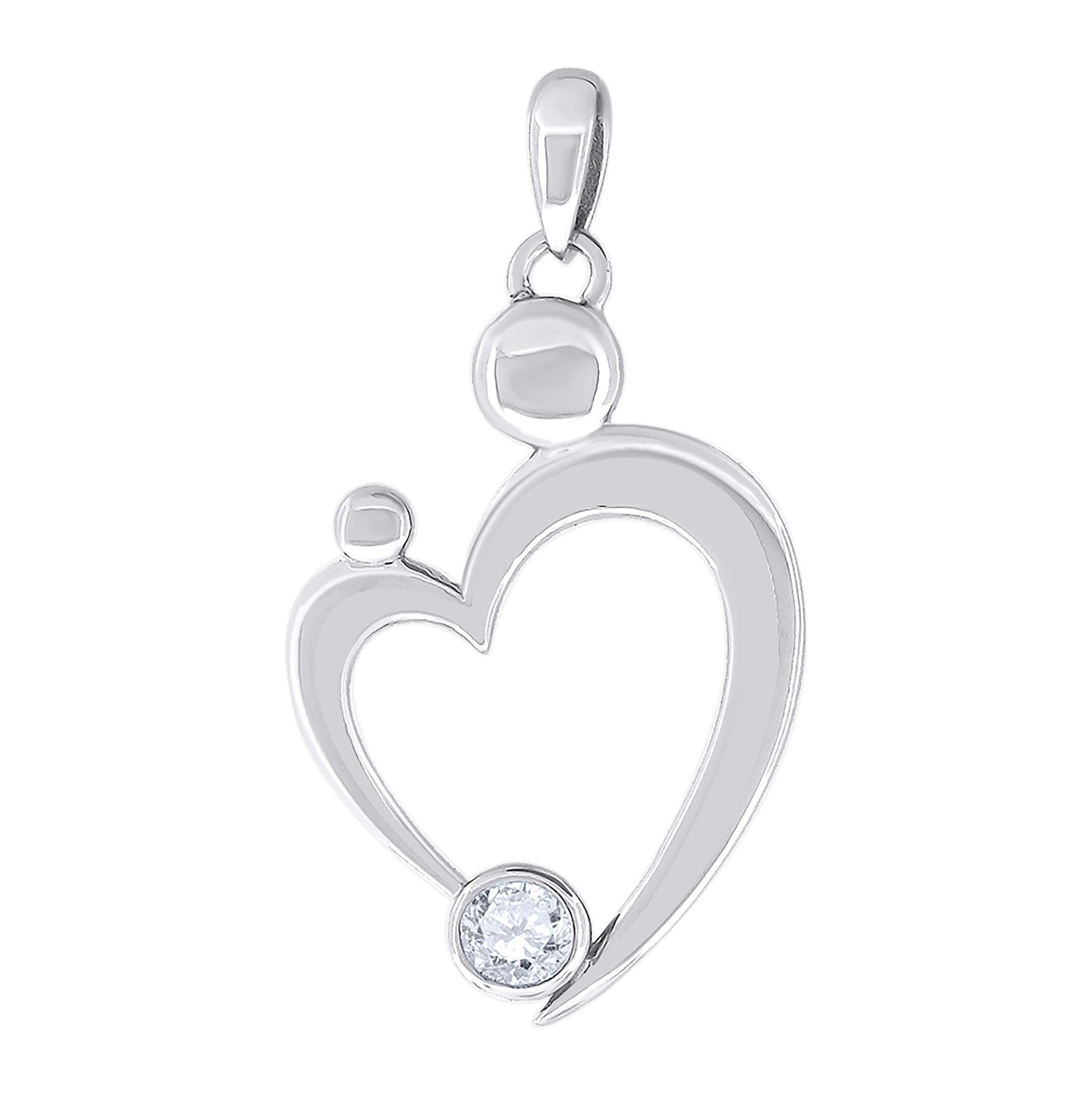 Sterling Silver Womens Cubic-Zirconia Heart Charm Pendant