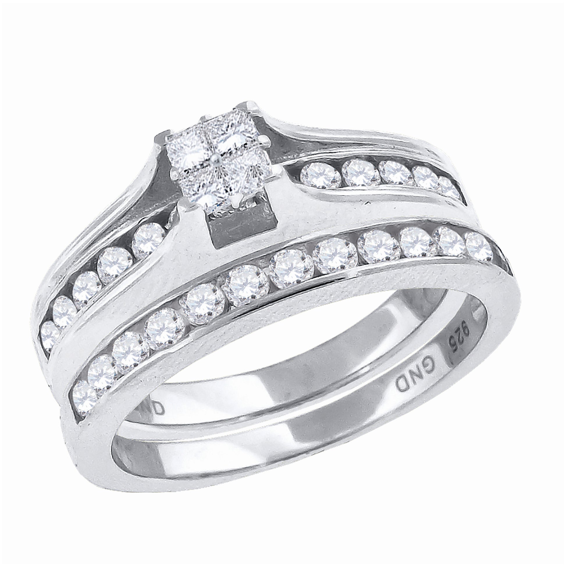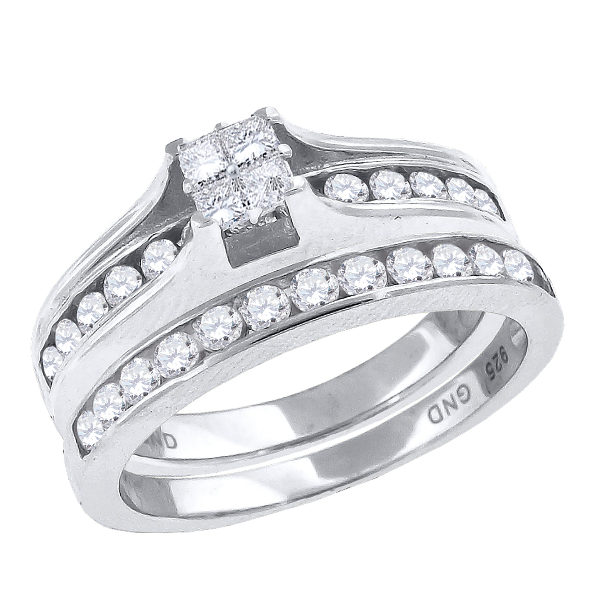 Sterling Silver Womens Cubic Zirconia Sizes 6-9 Princess-Cut Center Stones Square Head Bridal Set Anniversary Engagement Wedding Band Ring