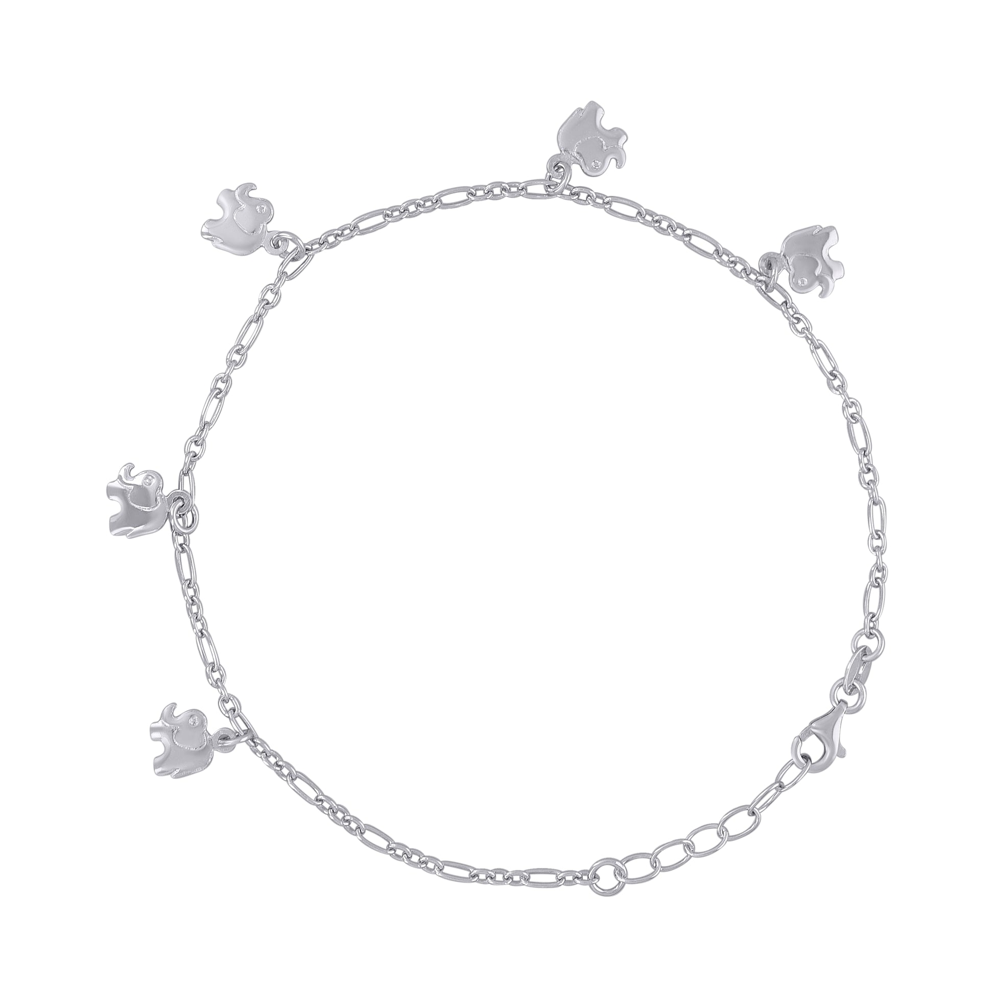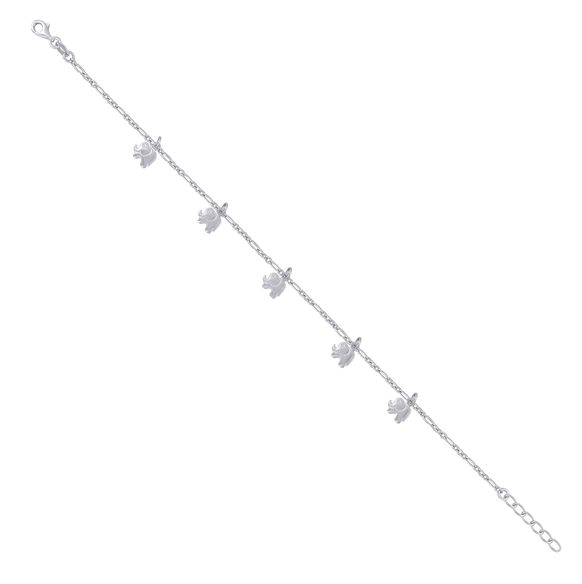 Sterling Silver Womens Figaro Link Elephant Fashion Charms Anklet