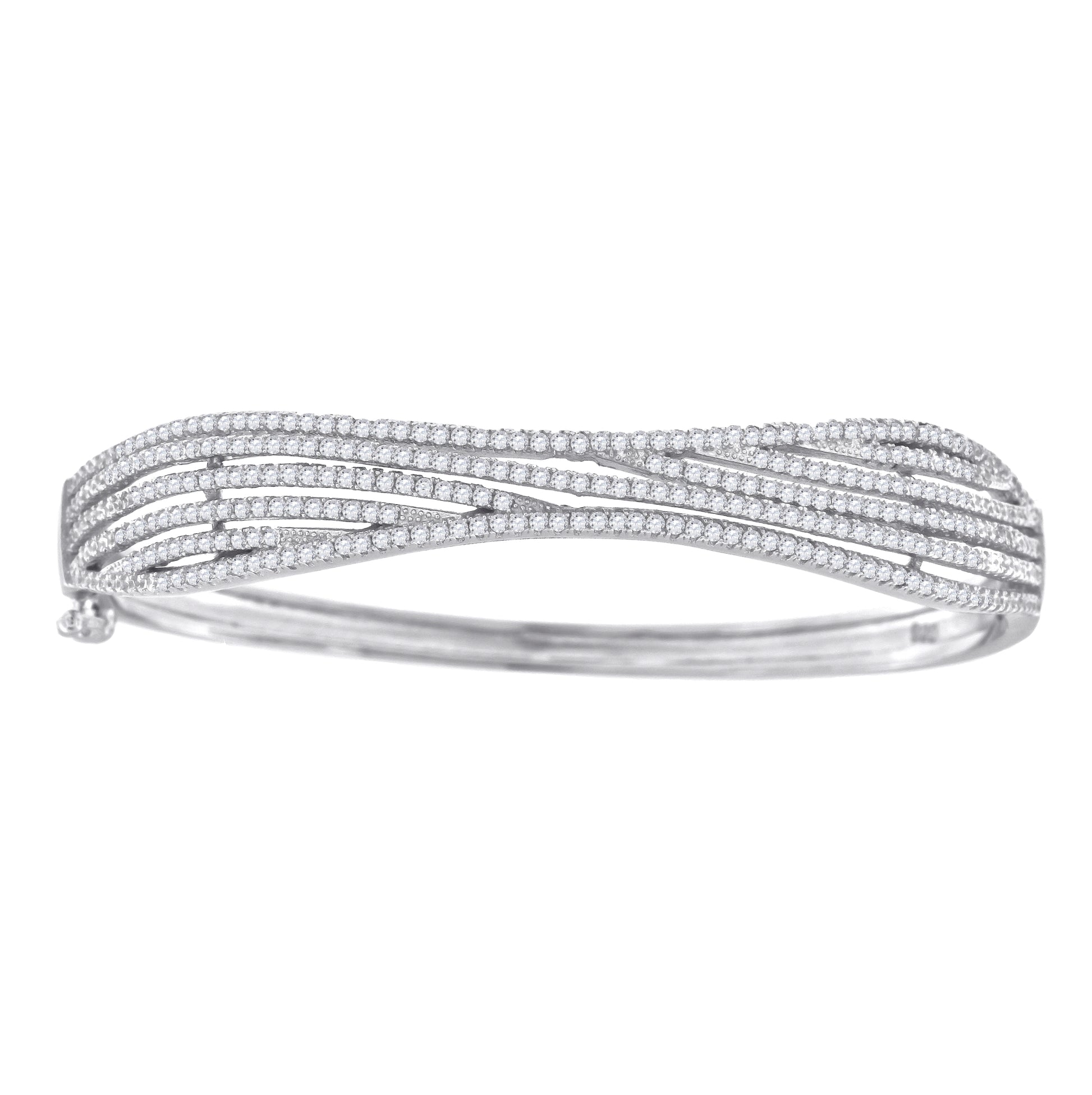 Sterling Silver Womens Micropave Cubic Zirconia Fashion Waves Bangle