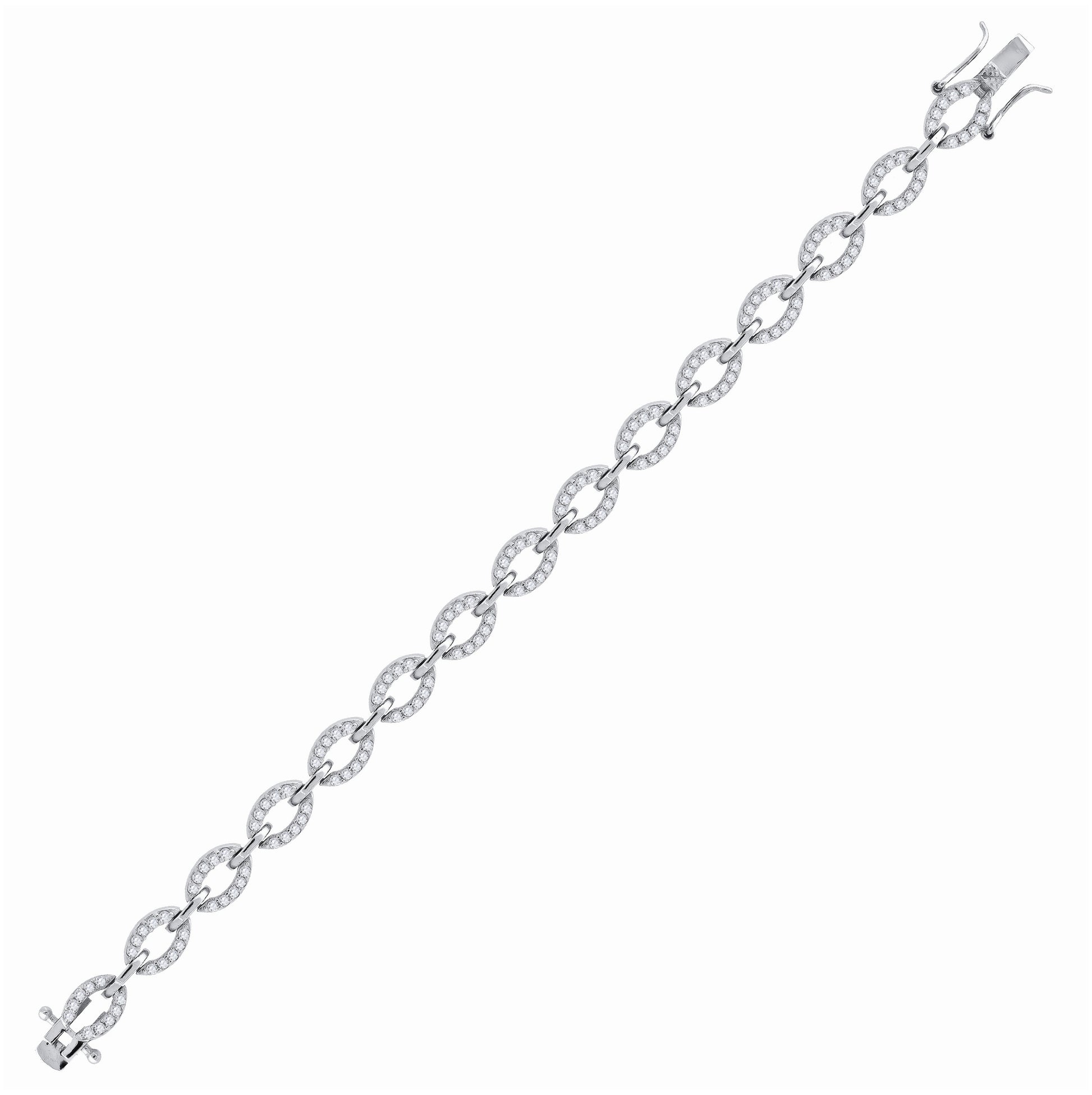 Sterling Silver Womens Micropave Cubic Zirconia Oval Link Bracelet