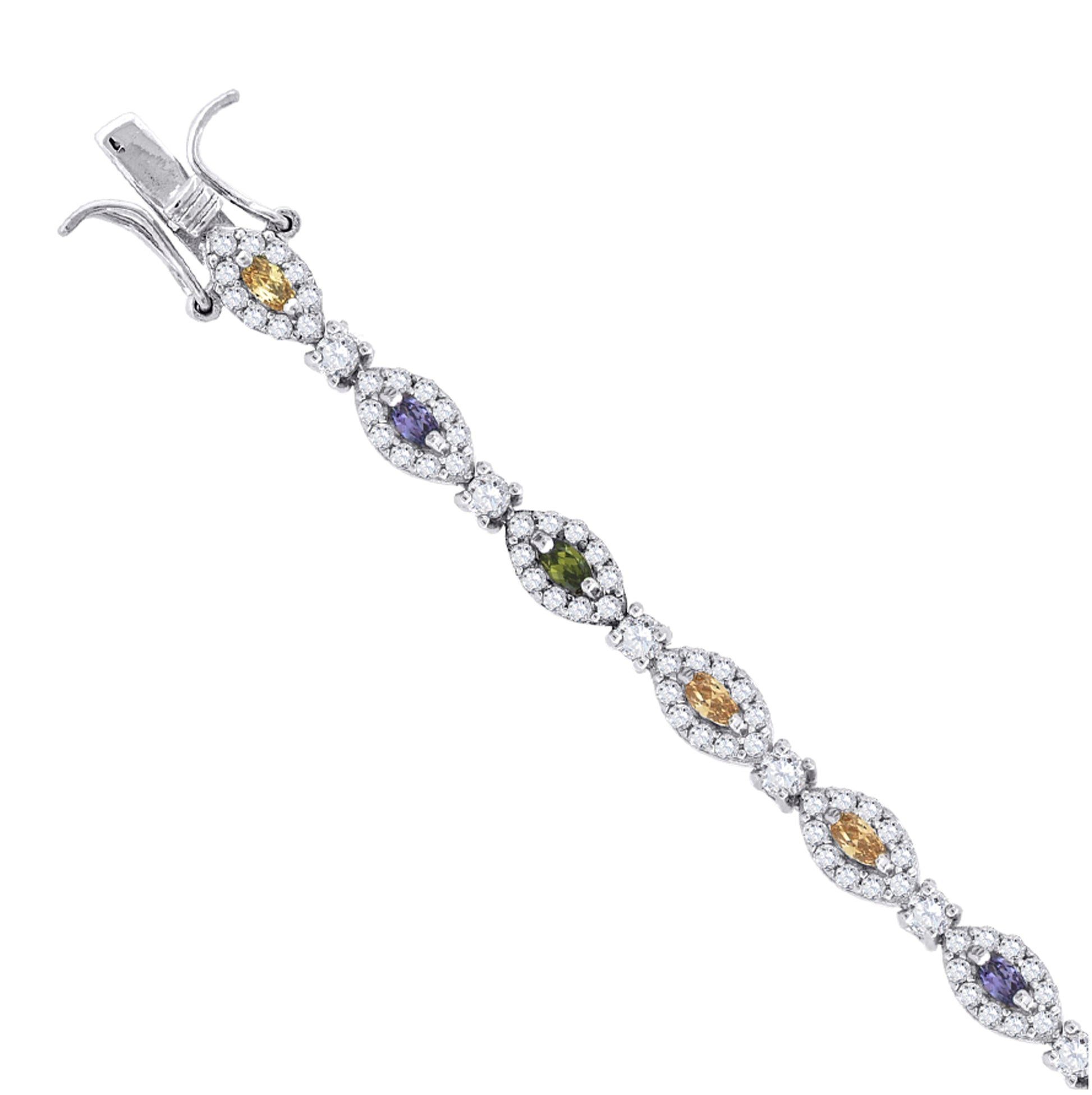Sterling Silver Womens Multi Color Cubic Zirconia Marquise Link Bracelet