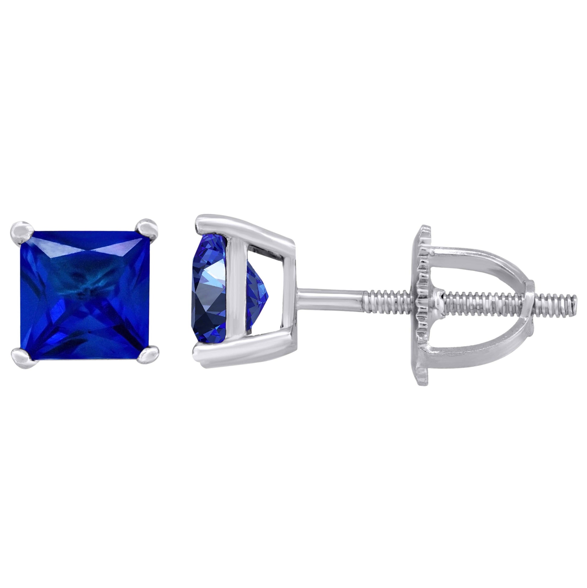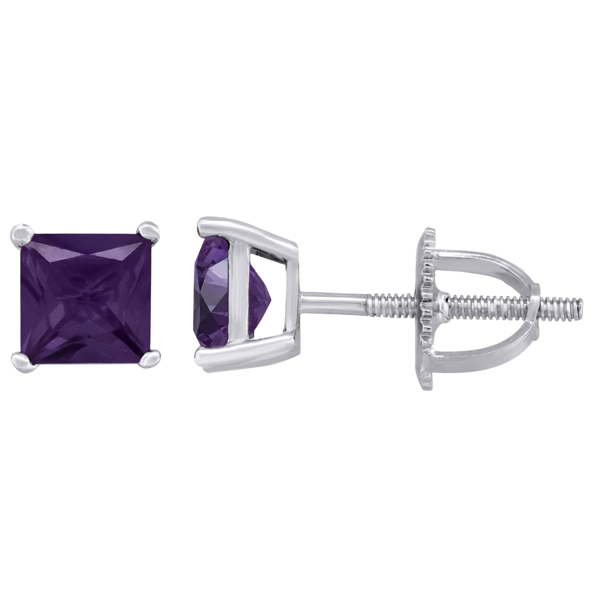 Sterling Silver Womens Princess Cut Cubic Zirconia 5mm Square Classic Studs Earrings