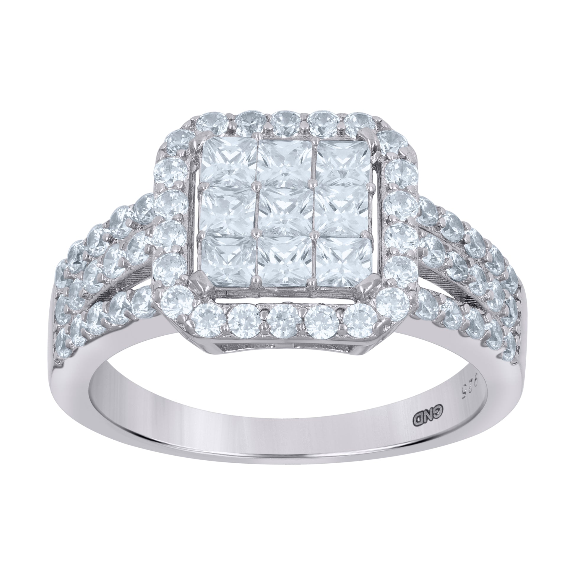 Sterling Silver Womens Princess Cut Cubic Zirconia Square Head Bridal Anniversary Engagement Wedding Ring
