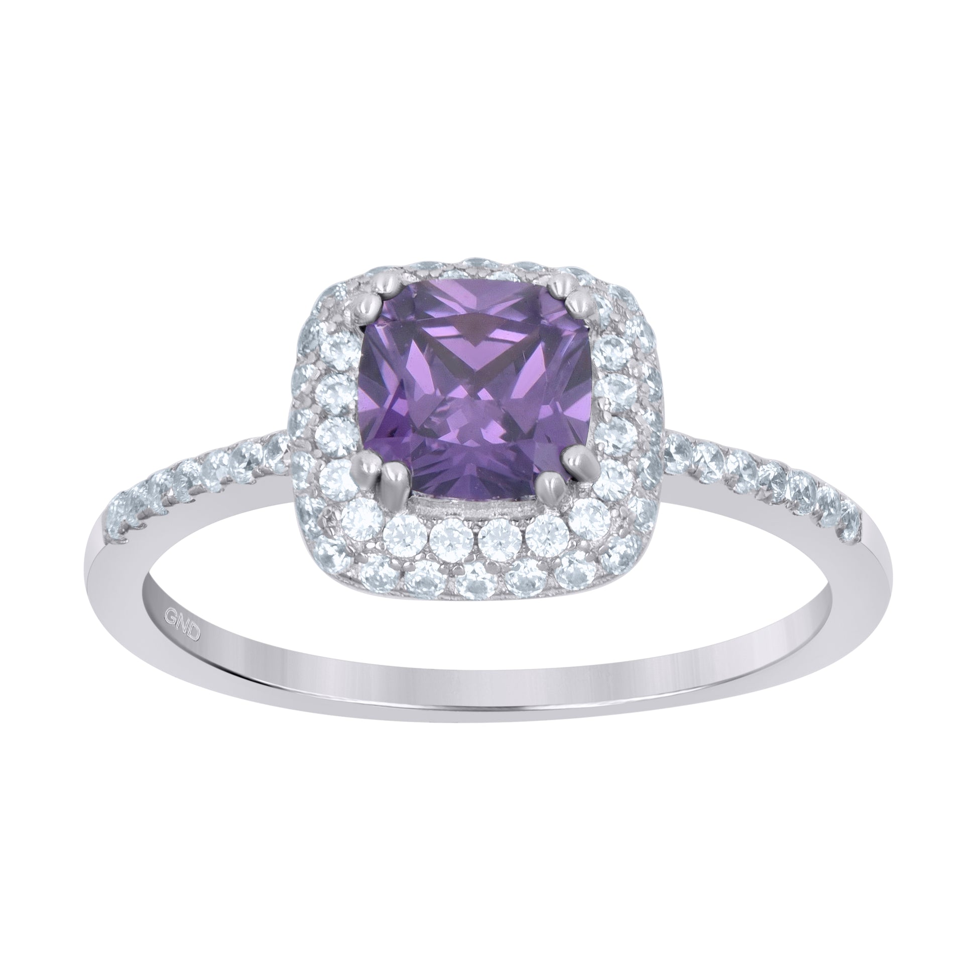 Sterling Silver Womens Purple Cubic Zirconia Halo Bridal Anniversary Wedding Engagement Band Ring