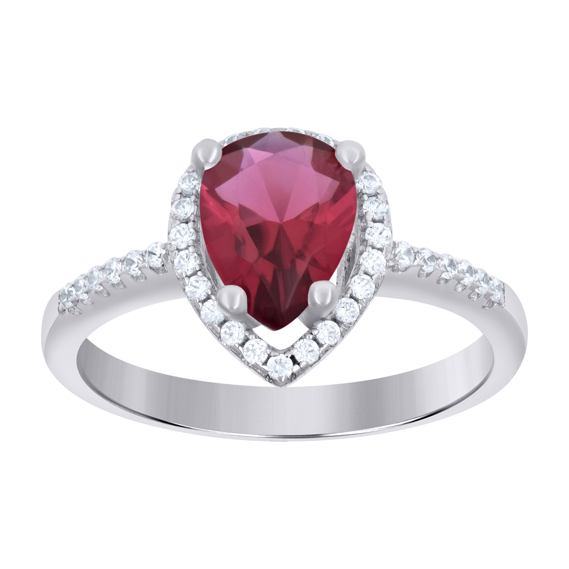 Sterling Silver Womens Red Pear Cubic Zirconia Fashion Bridal Anniversary Wedding Engagement Band Ring