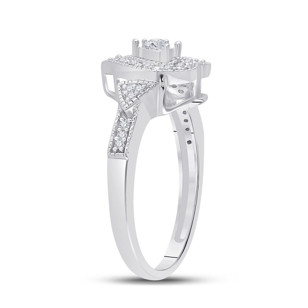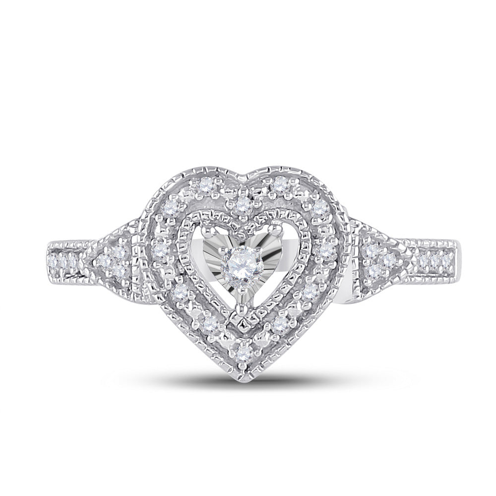 Sterling Silver Womens Round Diamond Heart Ring 1/8 Cttw, Womens Size: 5-10