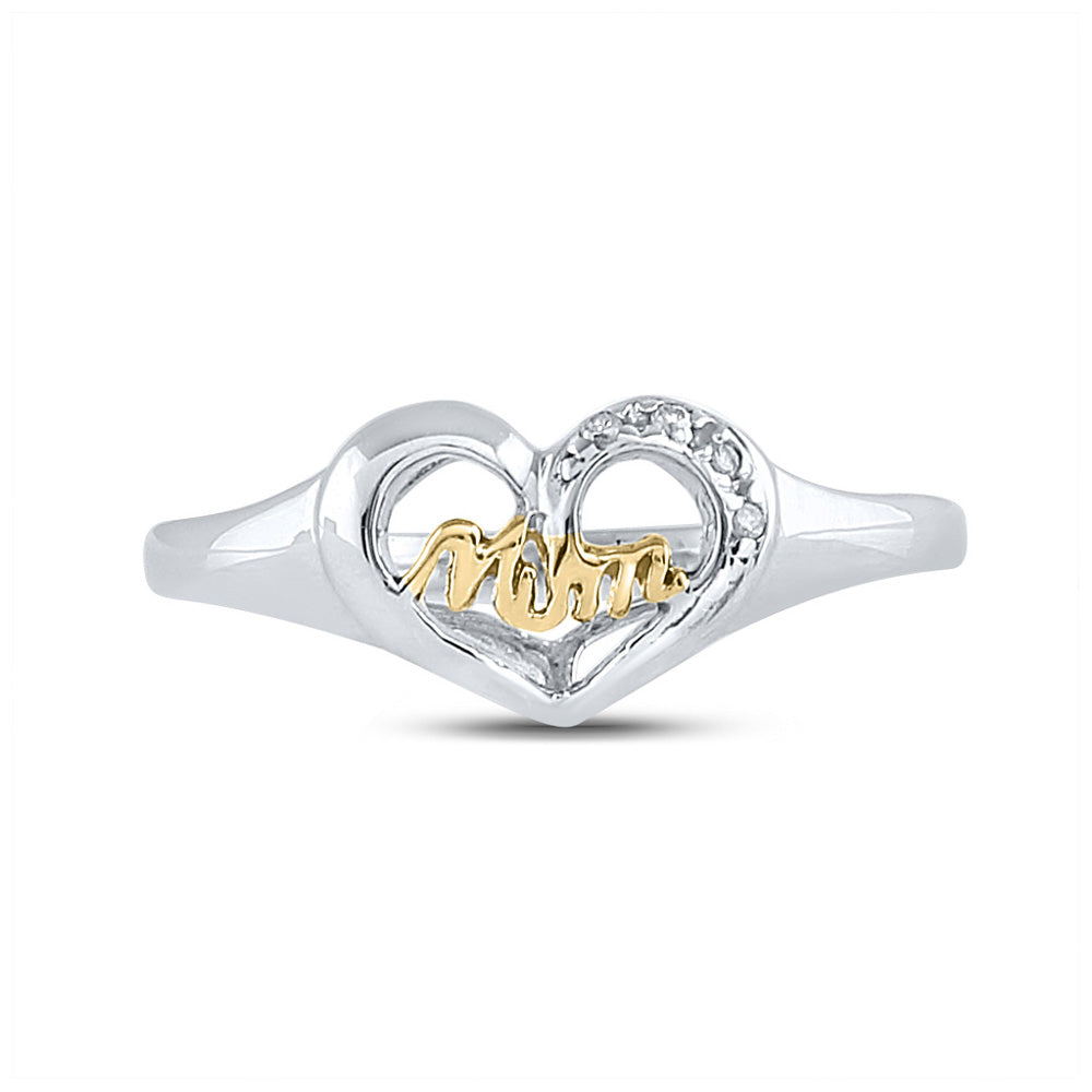 Sterling Silver Womens Round Diamond Mom Heart Ring .02 Cttw, Womens Size: 5-10