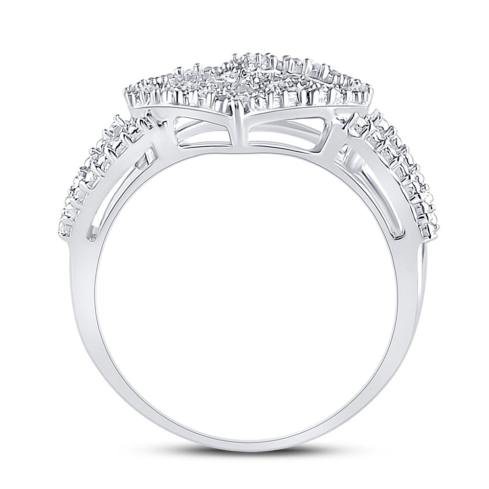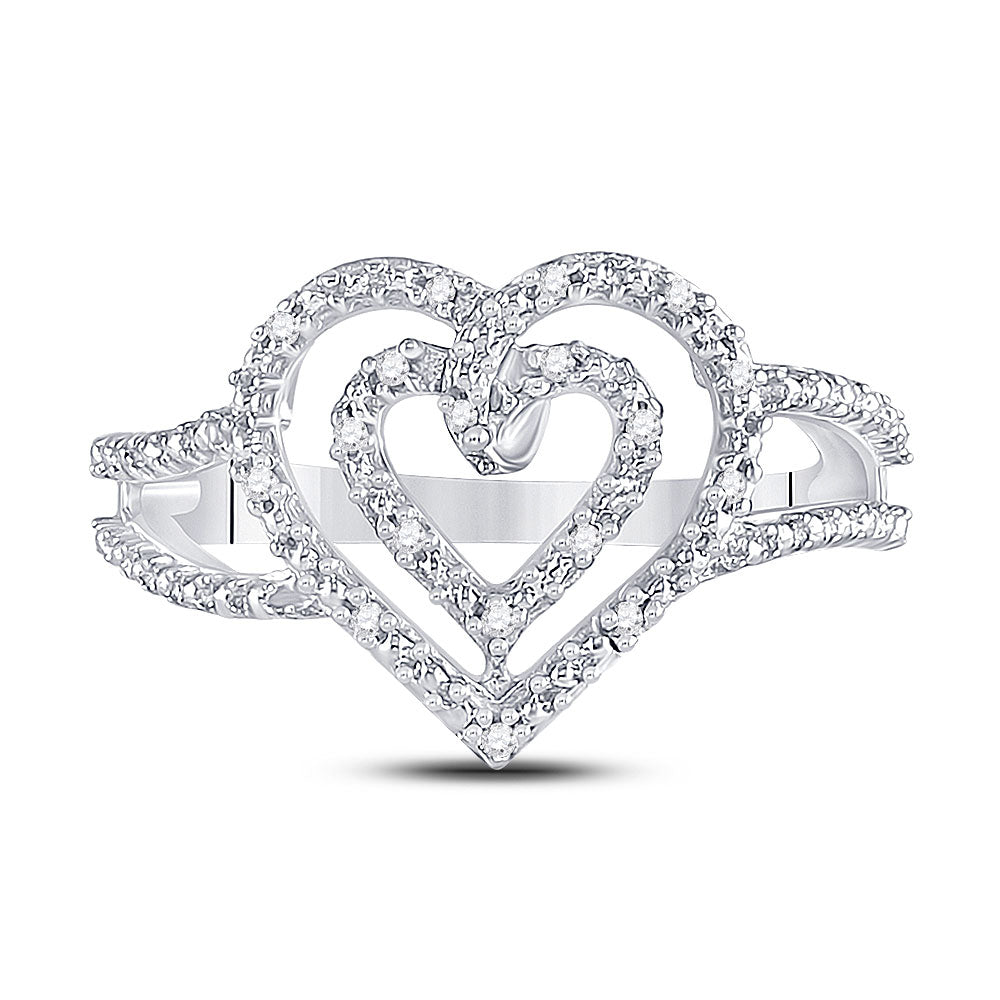 Sterling Silver Womens Round Diamond Nested Double Heart Ring 1/20 Cttw, Womens Size: 5-10