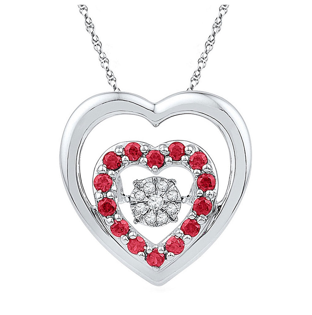 Sterling Silver Womens Round Lab-created Ruby Heart Moving Twinkle Diamond Cluster Pendant 1/2 Cttw