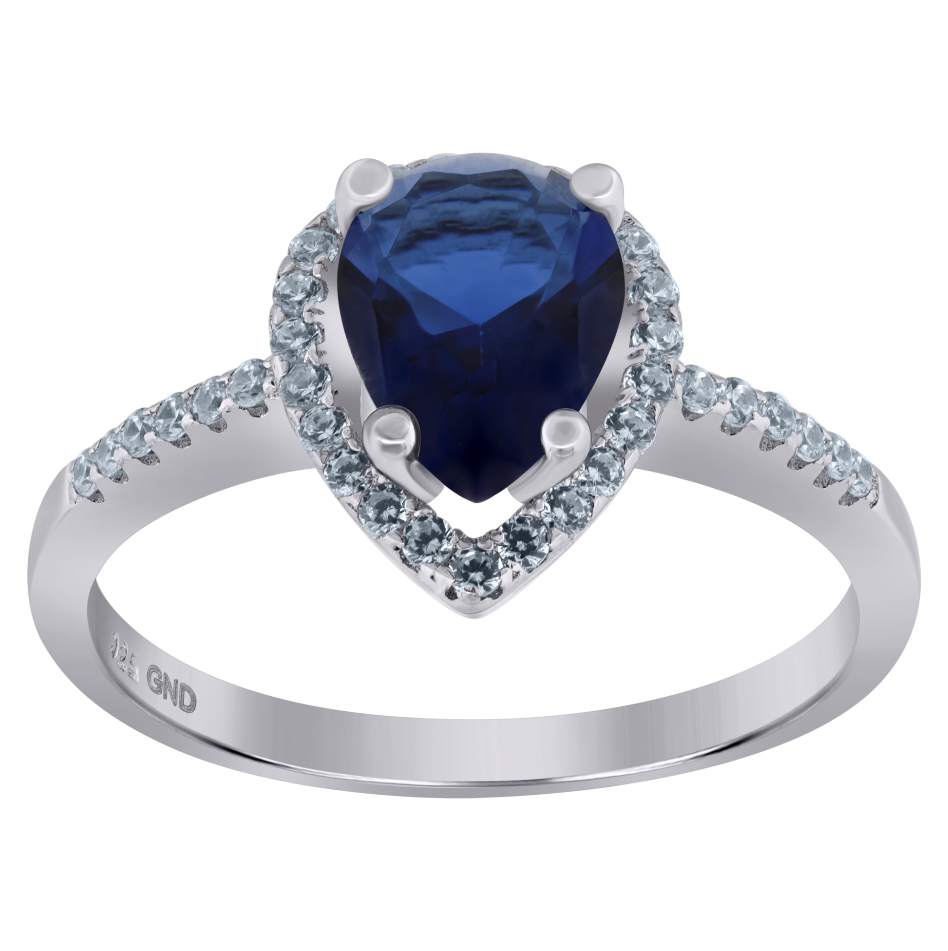 Sterling Silver Womens Royal Blue Pear Cubic Zirconia Fashion Bridal Anniversary Wedding Engagement Band Ring
