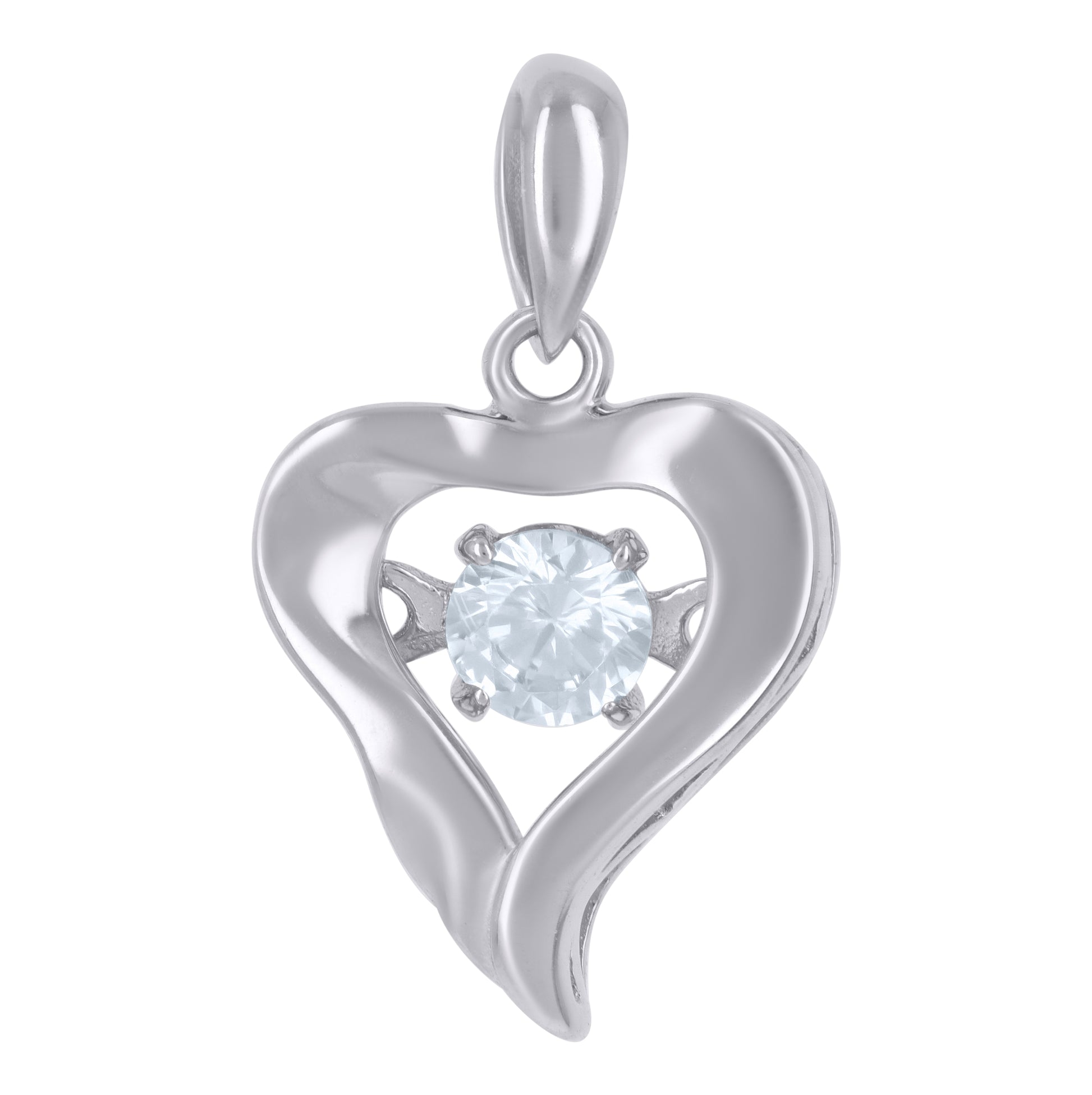 Sterling Silver Womens Sparkling Cubic-Zirconia Heart Charm Pendant