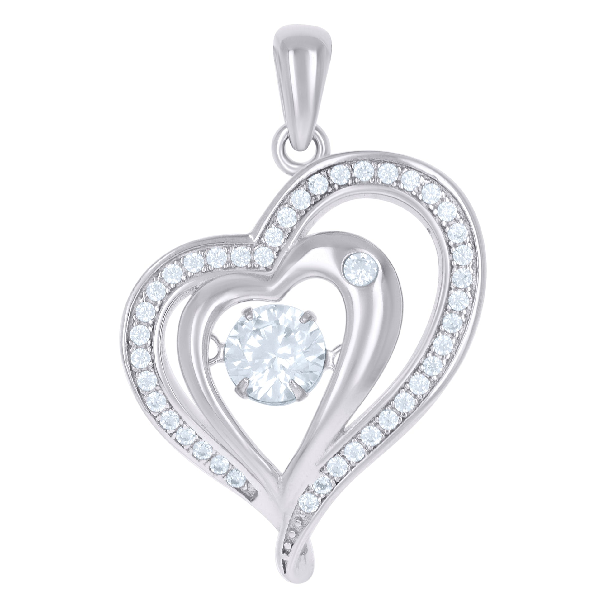 Sterling Silver Womens Sparkling Cubic-Zirconia Heart Charm Pendant