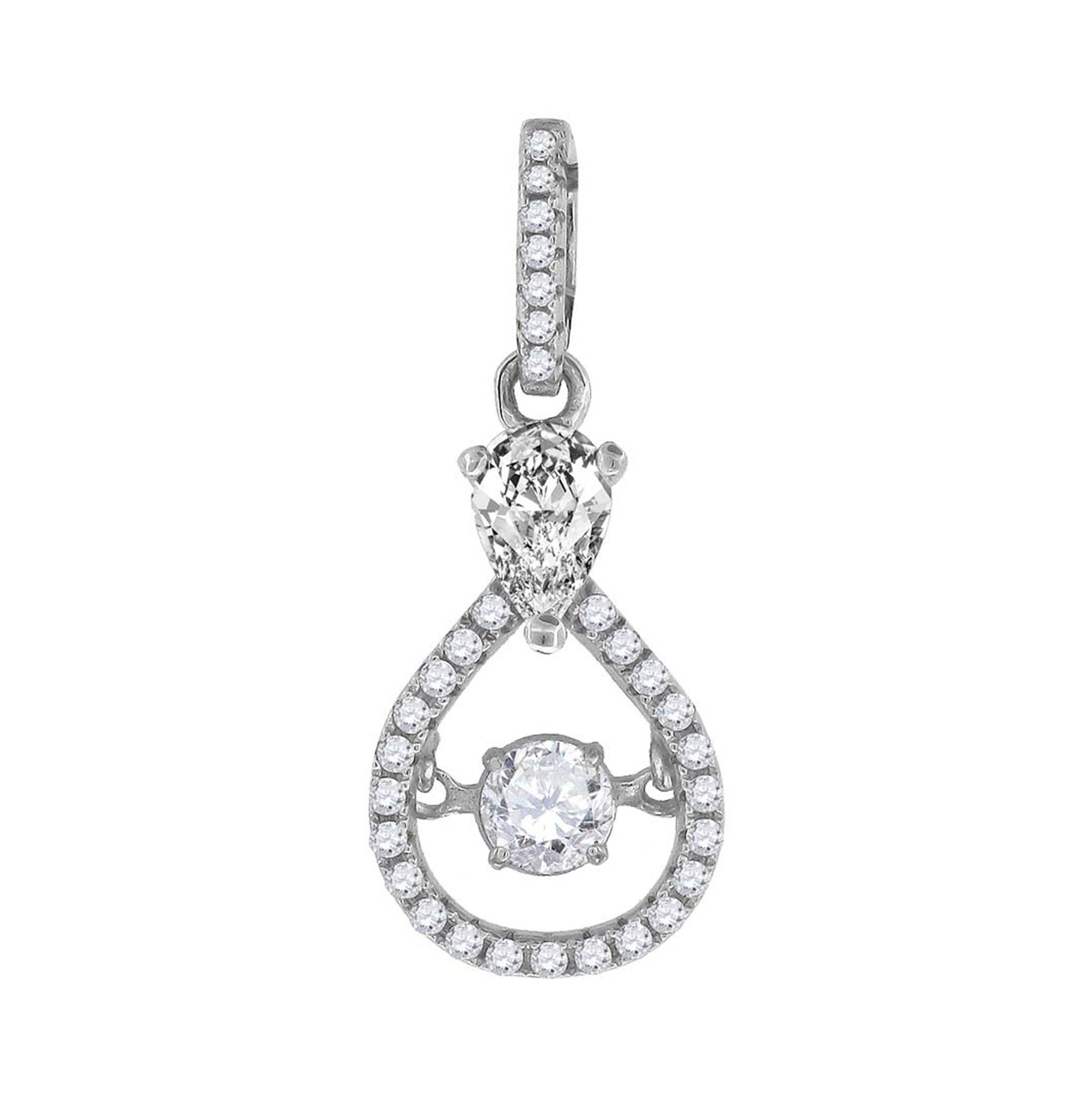 Sterling Silver Womens Sparkling Shaking Cubic Zirconia In Center Of Tear Drop Pendant Charm