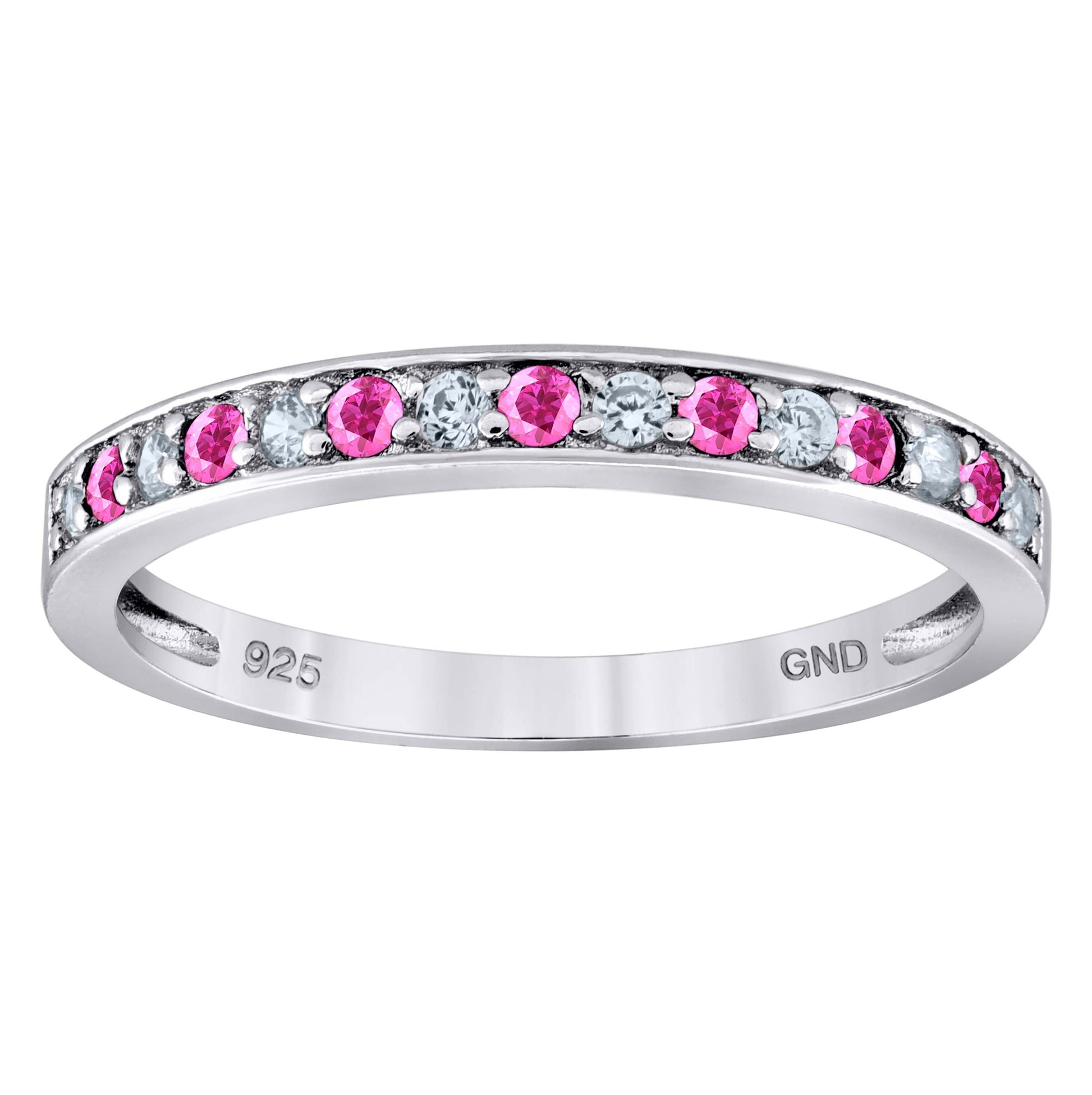 Sterling Silver Womens White Pink Cubic Zirconia Semi Eternity Stackable Bridal Anniversary Engagement Wedding Band Ring