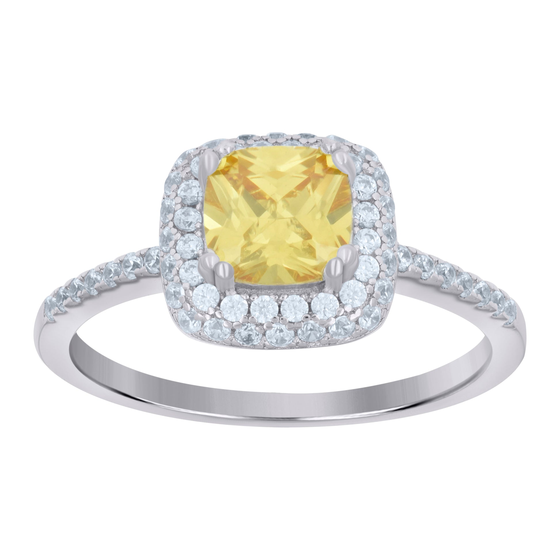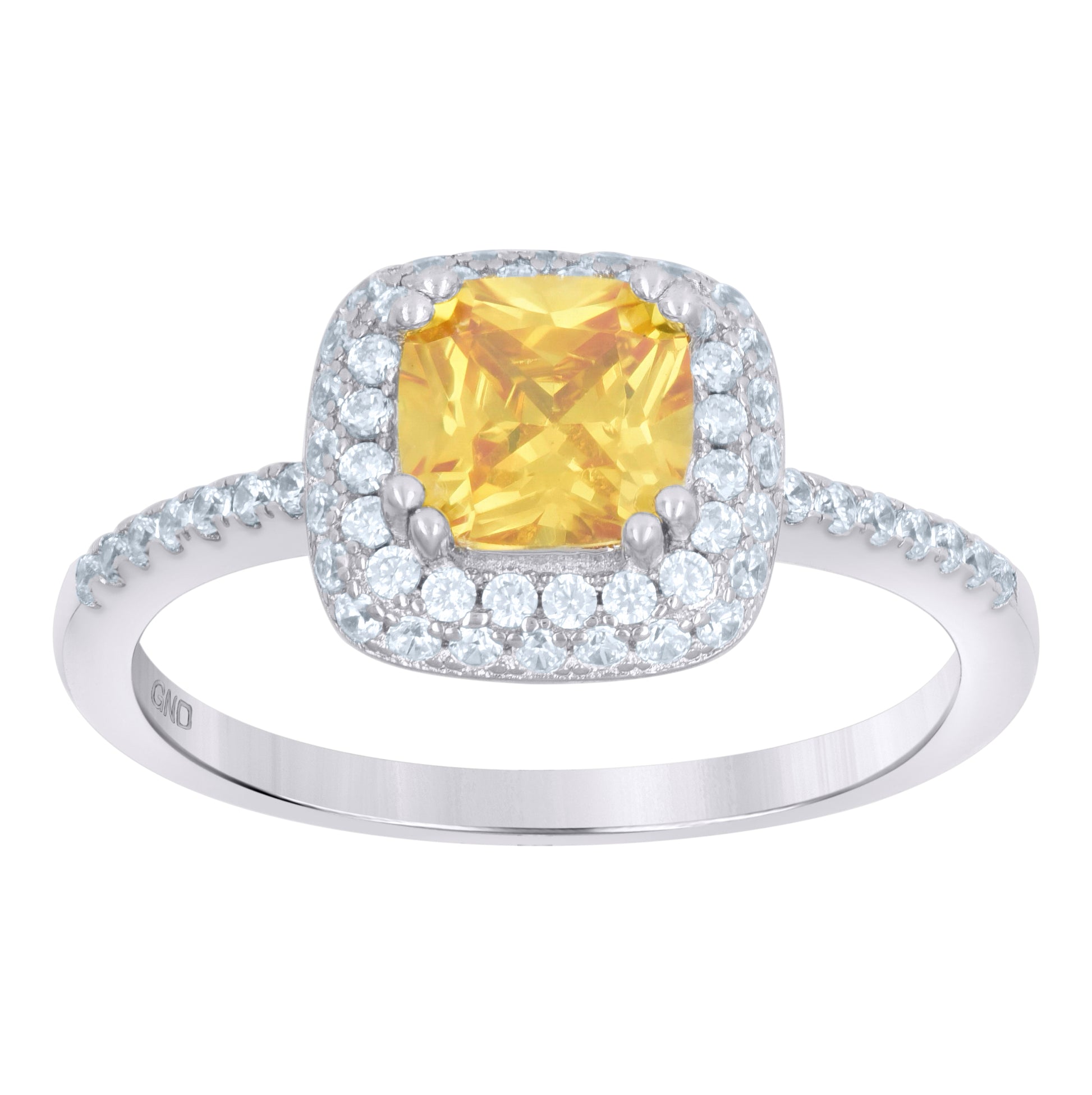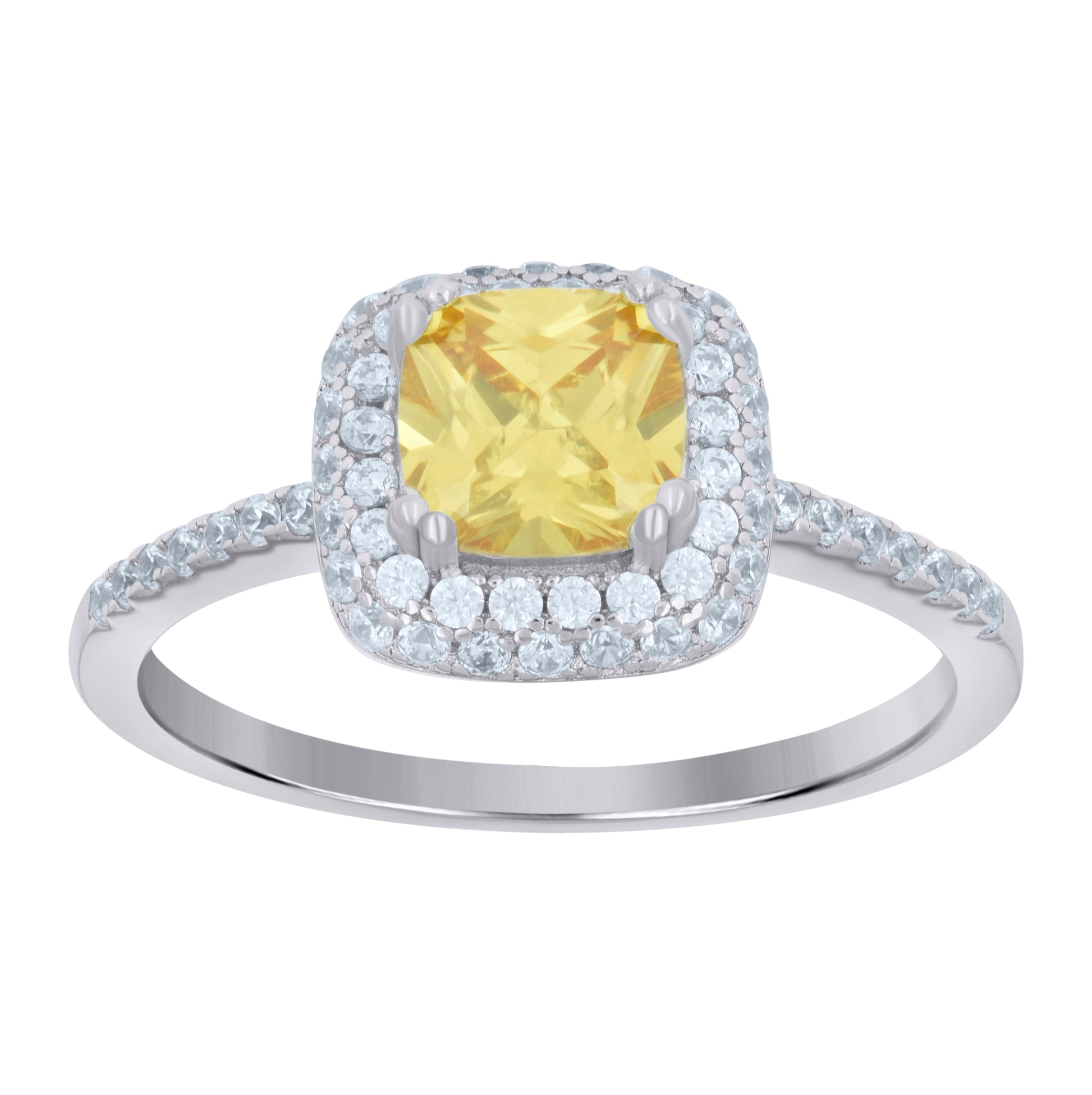 Sterling Silver Womens Yellow Cubic Zirconia Halo Bridal Anniversary Wedding Engagement Band Ring