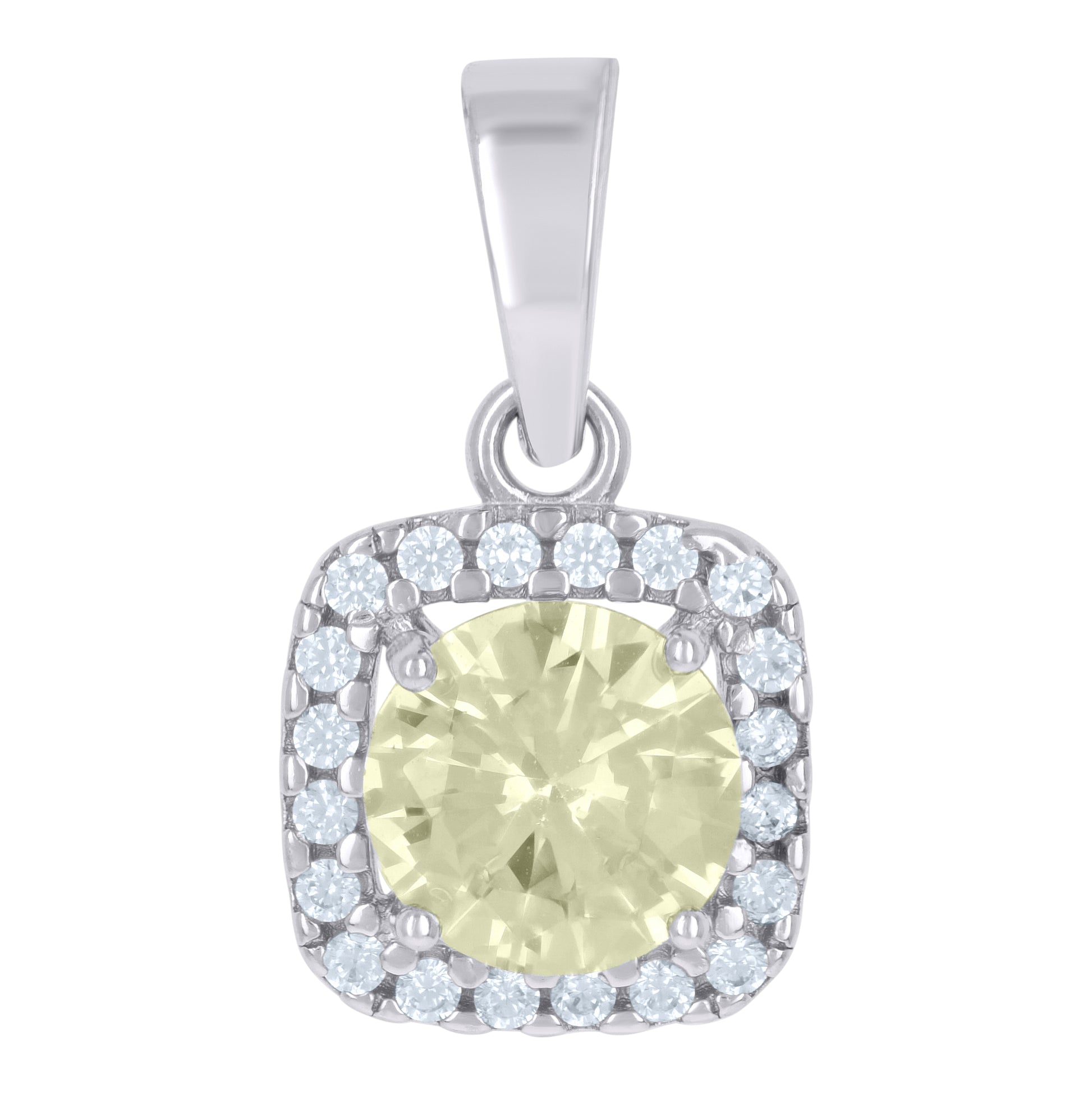 Sterling Silver Womens Yellow Cubic Zirconia Square Fashion Charm Pendant