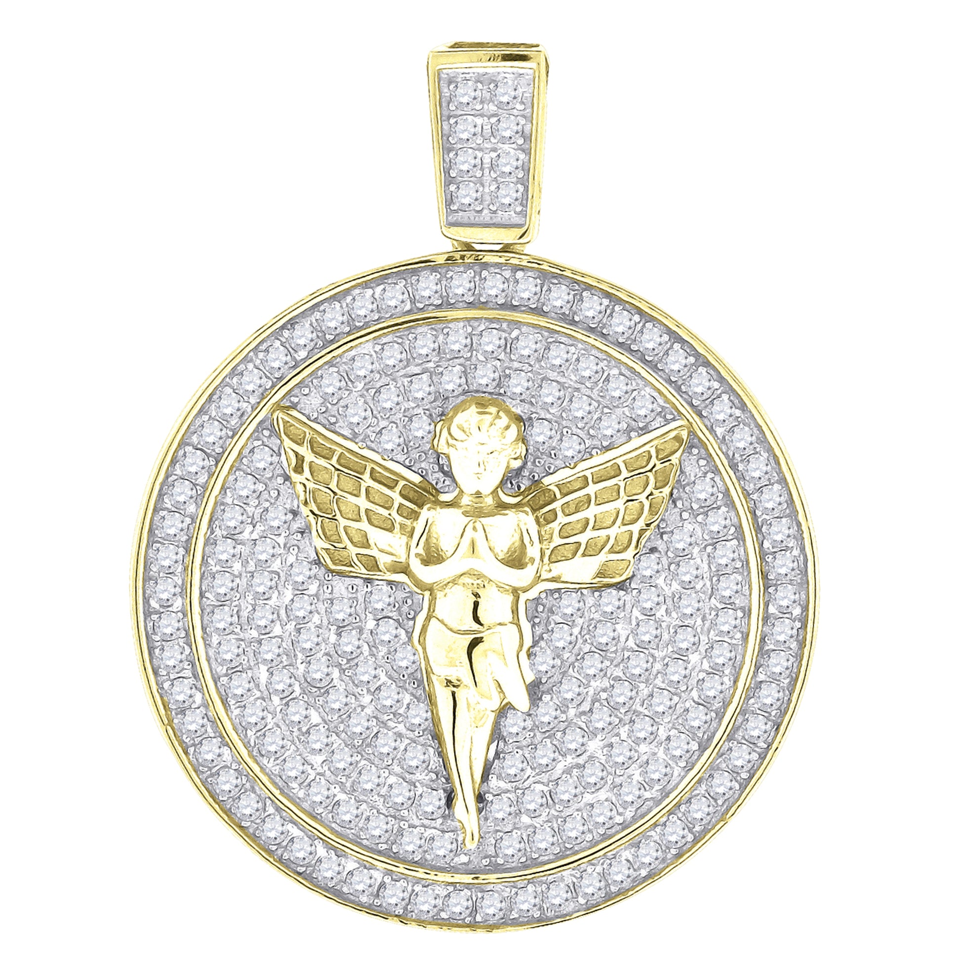 Sterling Silver Yellow-Tone Cubic Zirconia Angel Medallion Mens Pendant Charm