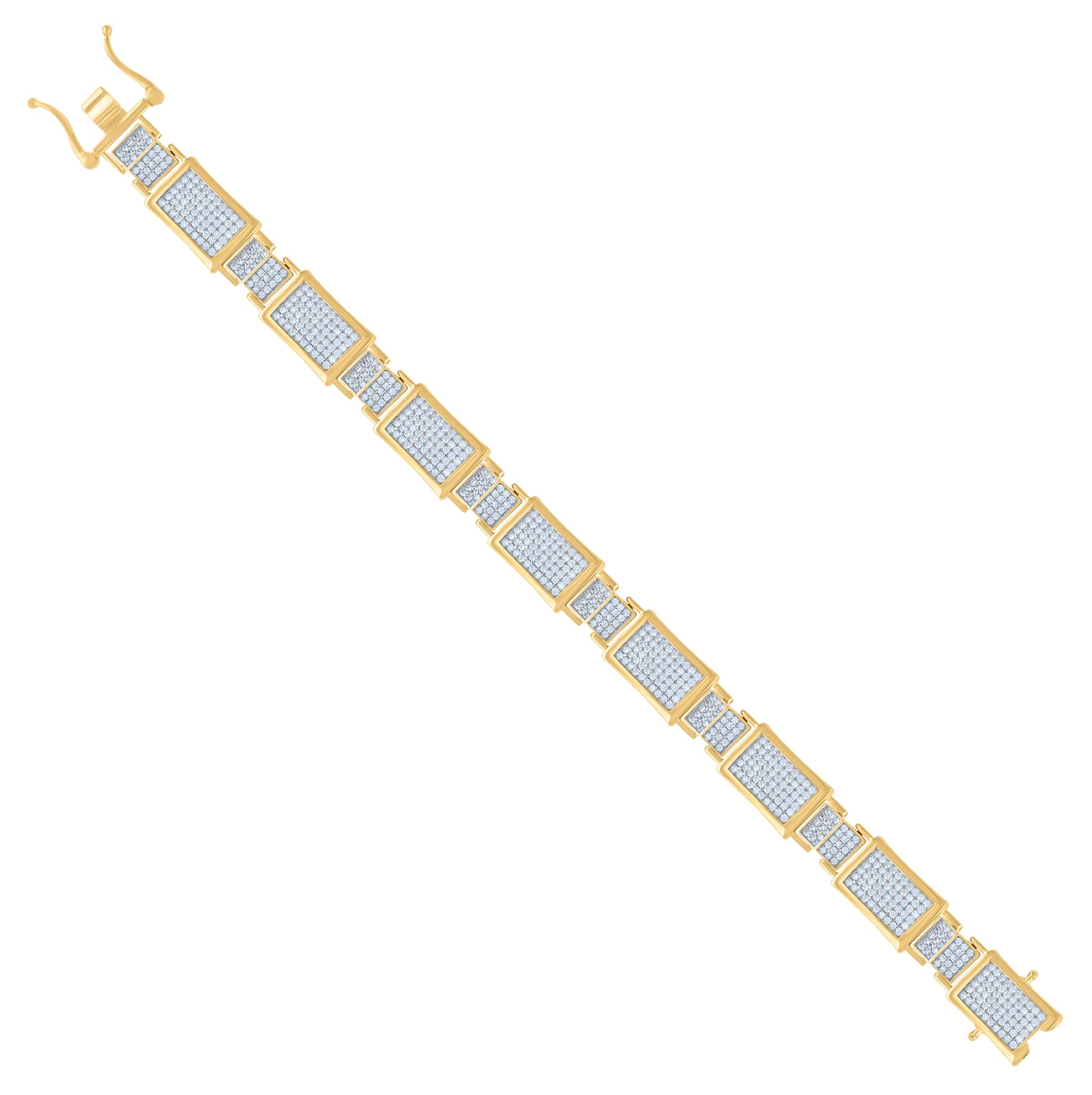 Sterling Silver Yellow-Tone Men Micropave Cubic Zirconia Link Bracelet