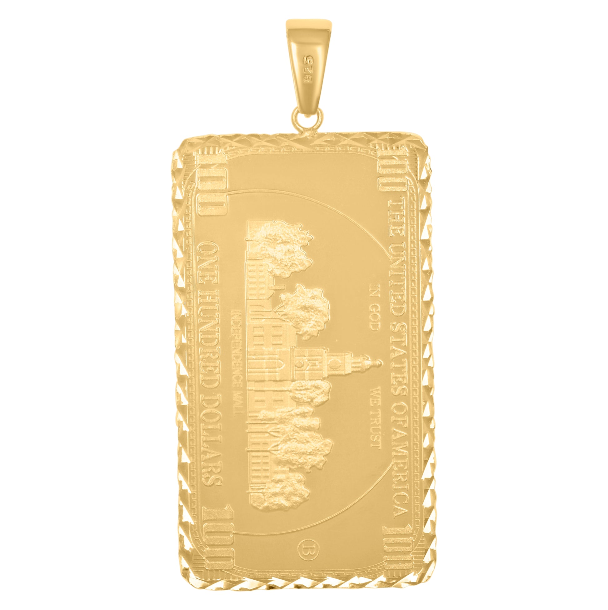 Sterling Silver Yellow-tone Mens Cubic-Zirconia 100 Dollar Bill Currency Fashion Charm Pendant