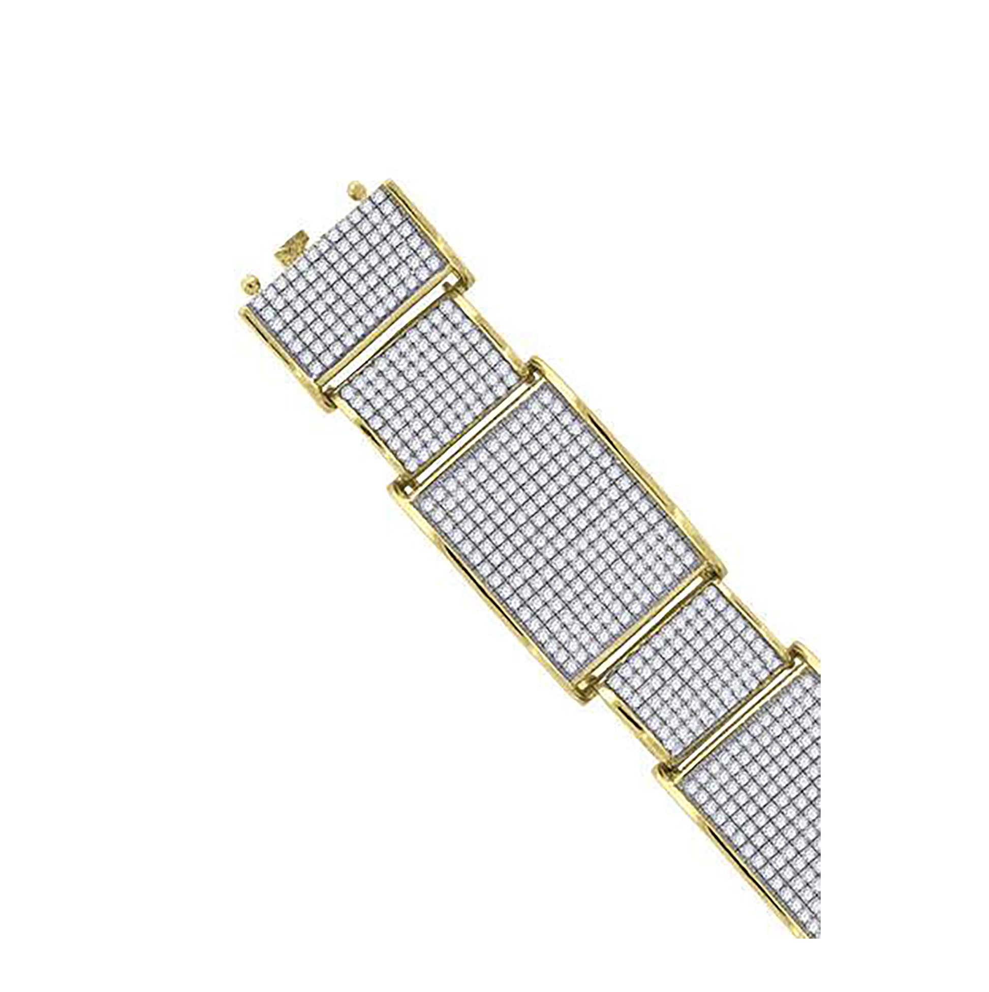 Sterling Silver Yellow-Tone Mens Micropave Cubic Zirconia Link Bracelet