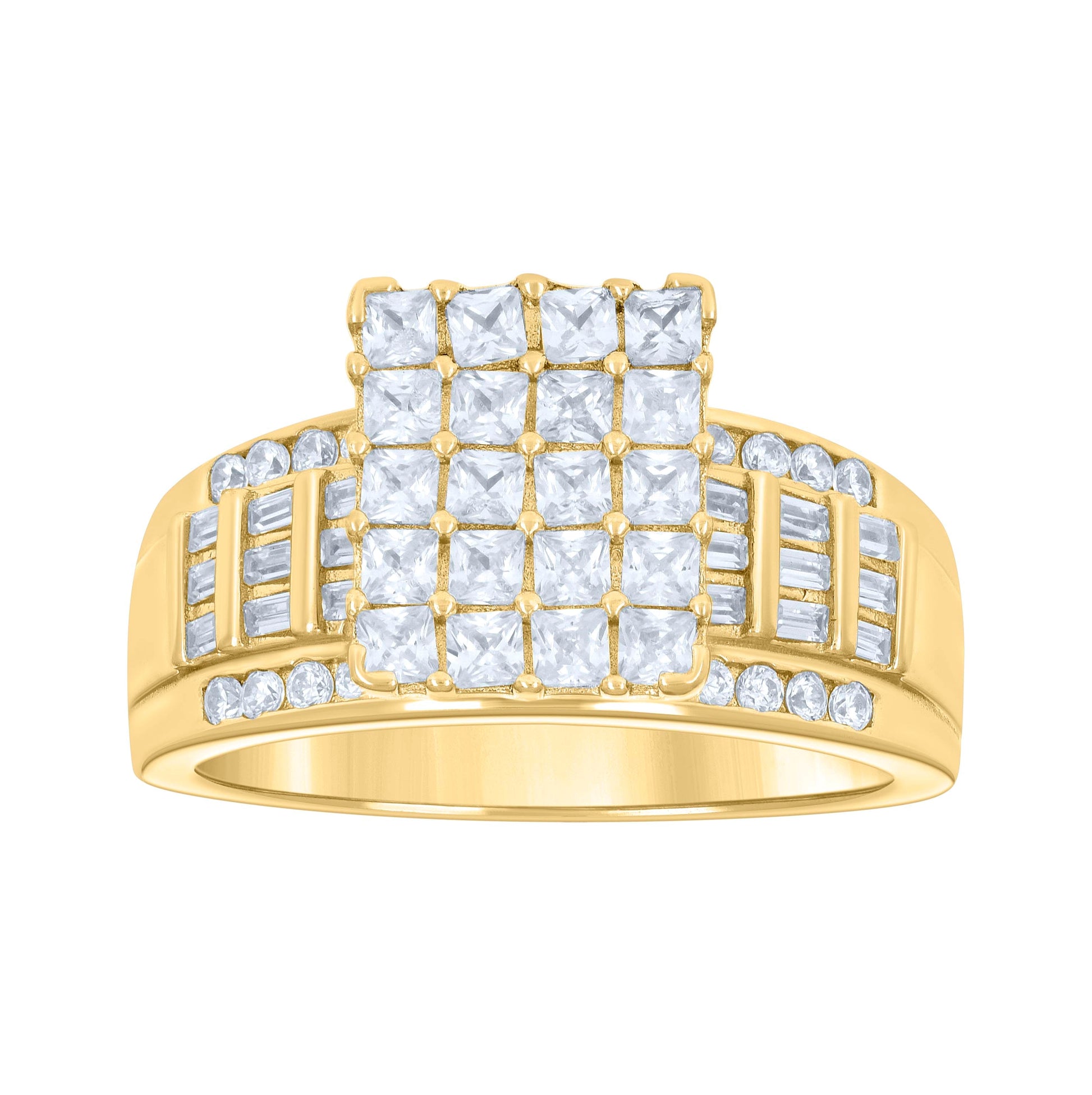 Sterling Silver Yellow-Tone Womens Cubic Zirconia Cinderella Bridal Anniversary Wedding Engagement Band Ring