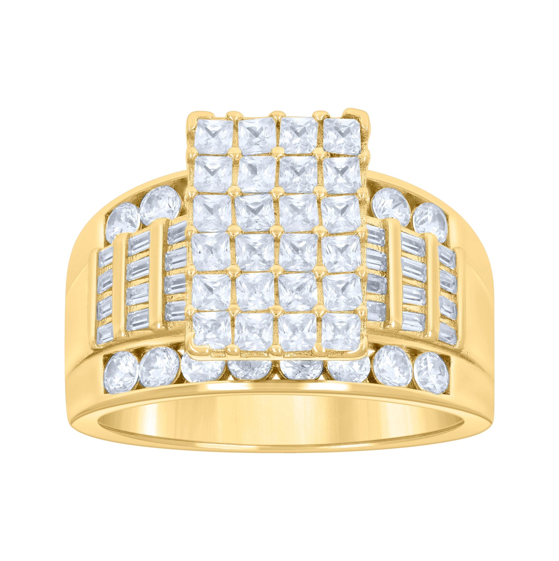 Sterling Silver Yellow-Tone Women's Cubic Zirconia Cinderella Bridal Anniversary Wedding Engagement Band Ring