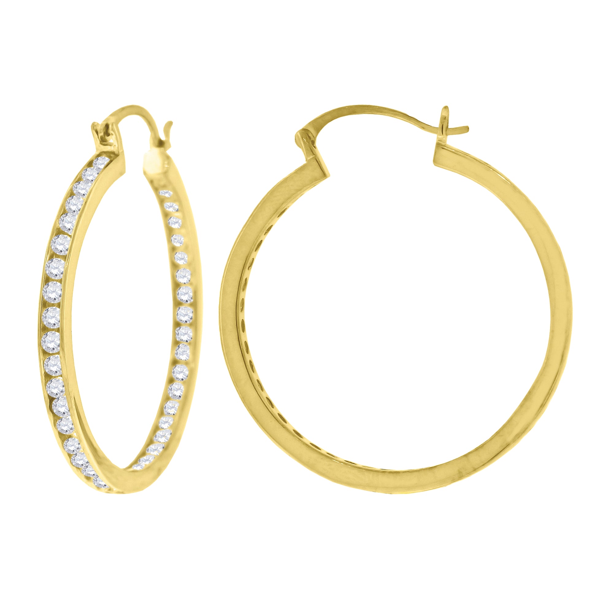 Sterling Silver Yellow-Tone Womens Cubic Zirconia Single Row Huggie Hoop Earrings
