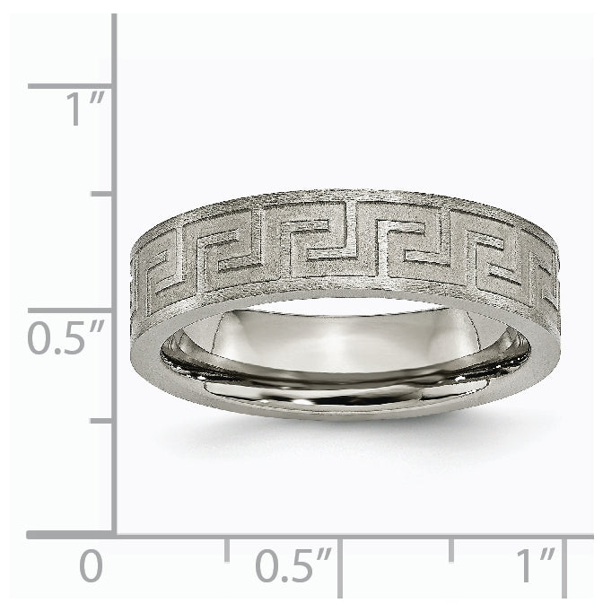 Titanium Greek Key 6mm Satin & Polished Band, Size 6