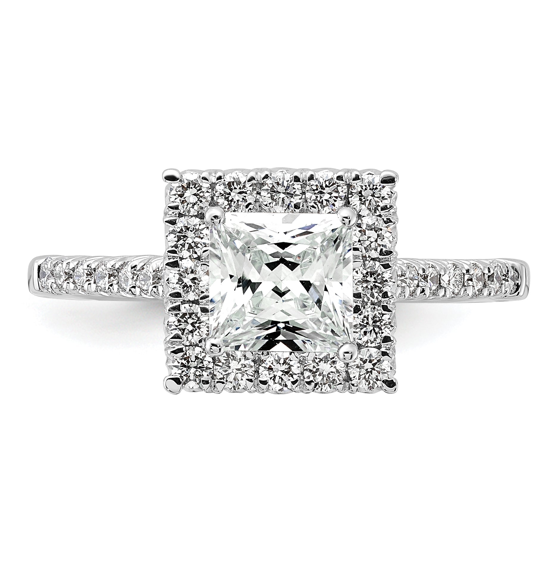 True Origin 14K White Gold 1/2 carat Lab Grown Diamond VS/SI D E F Semi Mount Princess Halo Engagement Ring