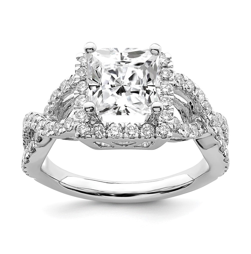 True Origin 14K White Gold 1 carat Lab Grown Diamond VS/SI D E F Semi Mount Princess Halo Engagement Ring, 10 mm