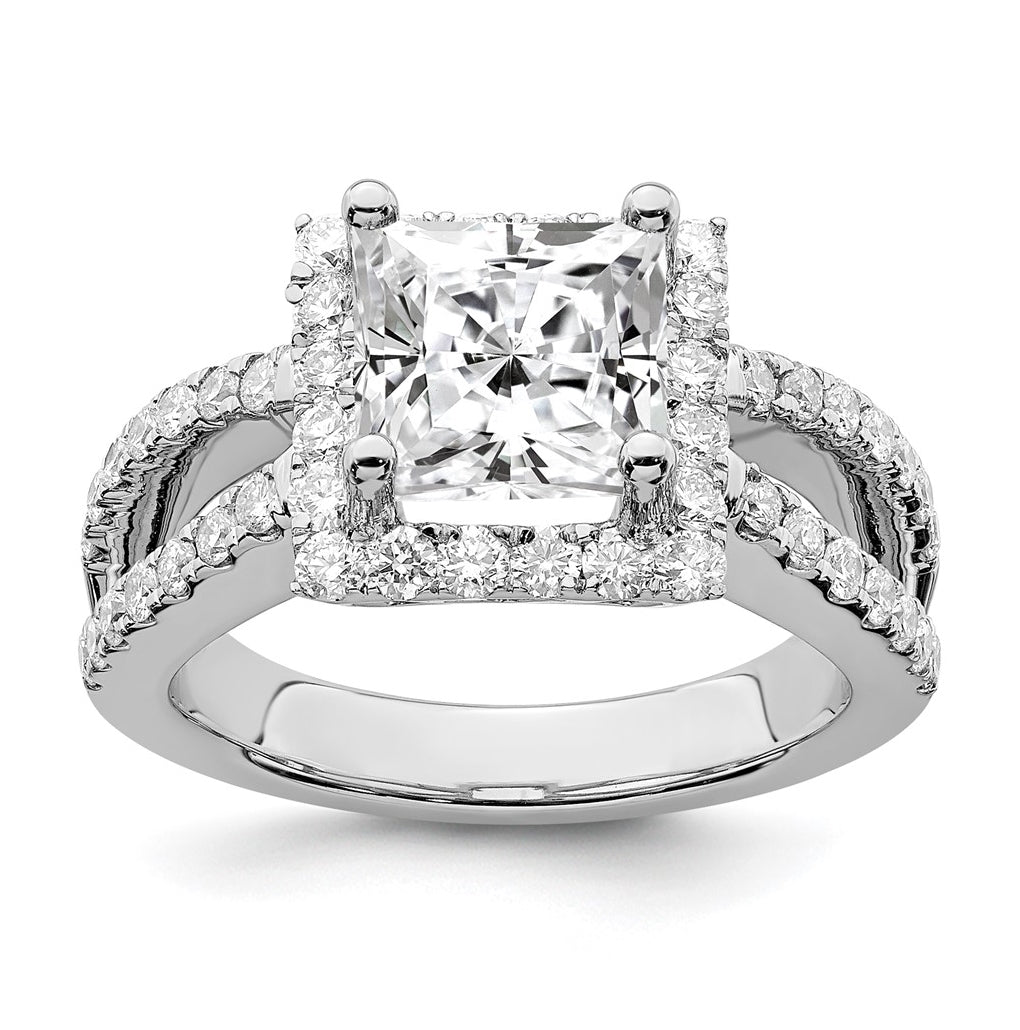 True Origin 14K White Gold 1 carat Lab Grown Diamond VS/SI D E F Semi Mount Princess Halo Engagement Ring, 11 mm