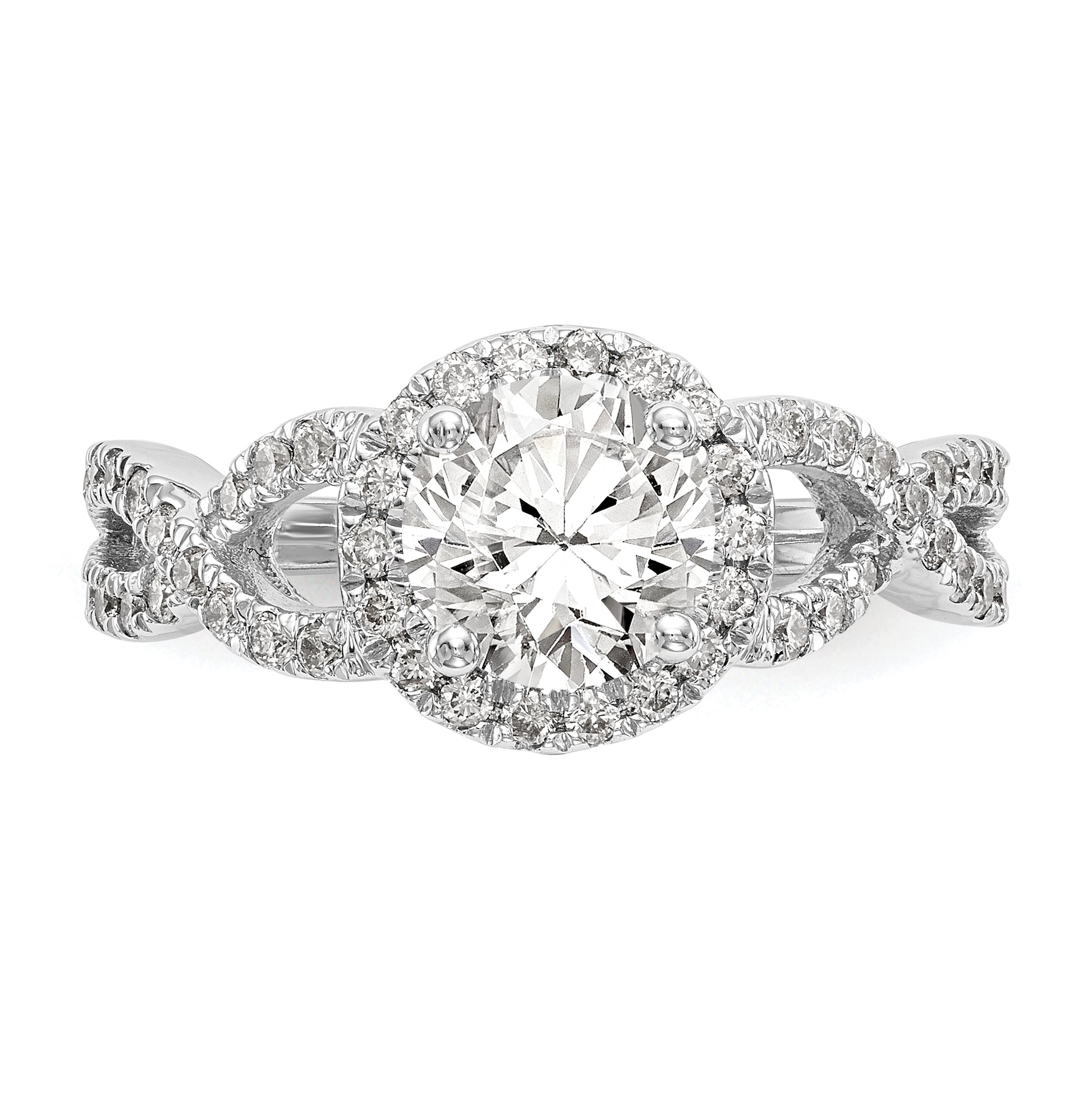 True Origin 14K White Gold 3/4 carat Lab Grown Diamond VS/SI D E F Semi Mount Round Halo Engagement Ring, 10 mm