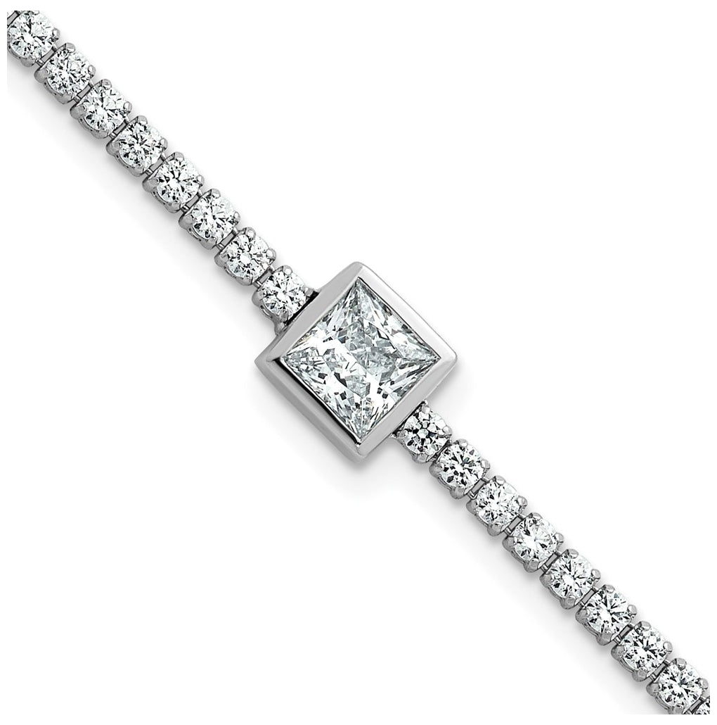 True Origin 14k White Gold 3 5/8 carat Lab Grown Diamond VS+ F+ Complete Princess Bezel-Set Tennis Bracelet