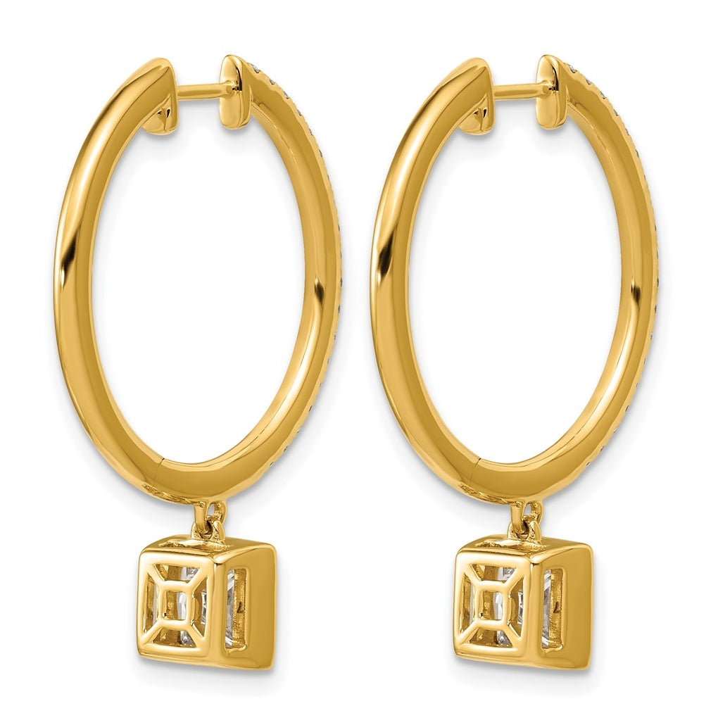 True Origin 14k Yellow Gold 2 3/8 carat Lab Grown Diamond VS+ F+ Complete Square Bezel-Set Dangle In/Out Hoop Earrings