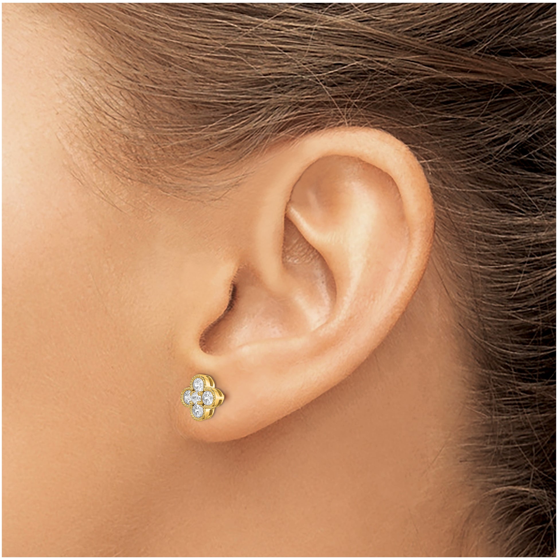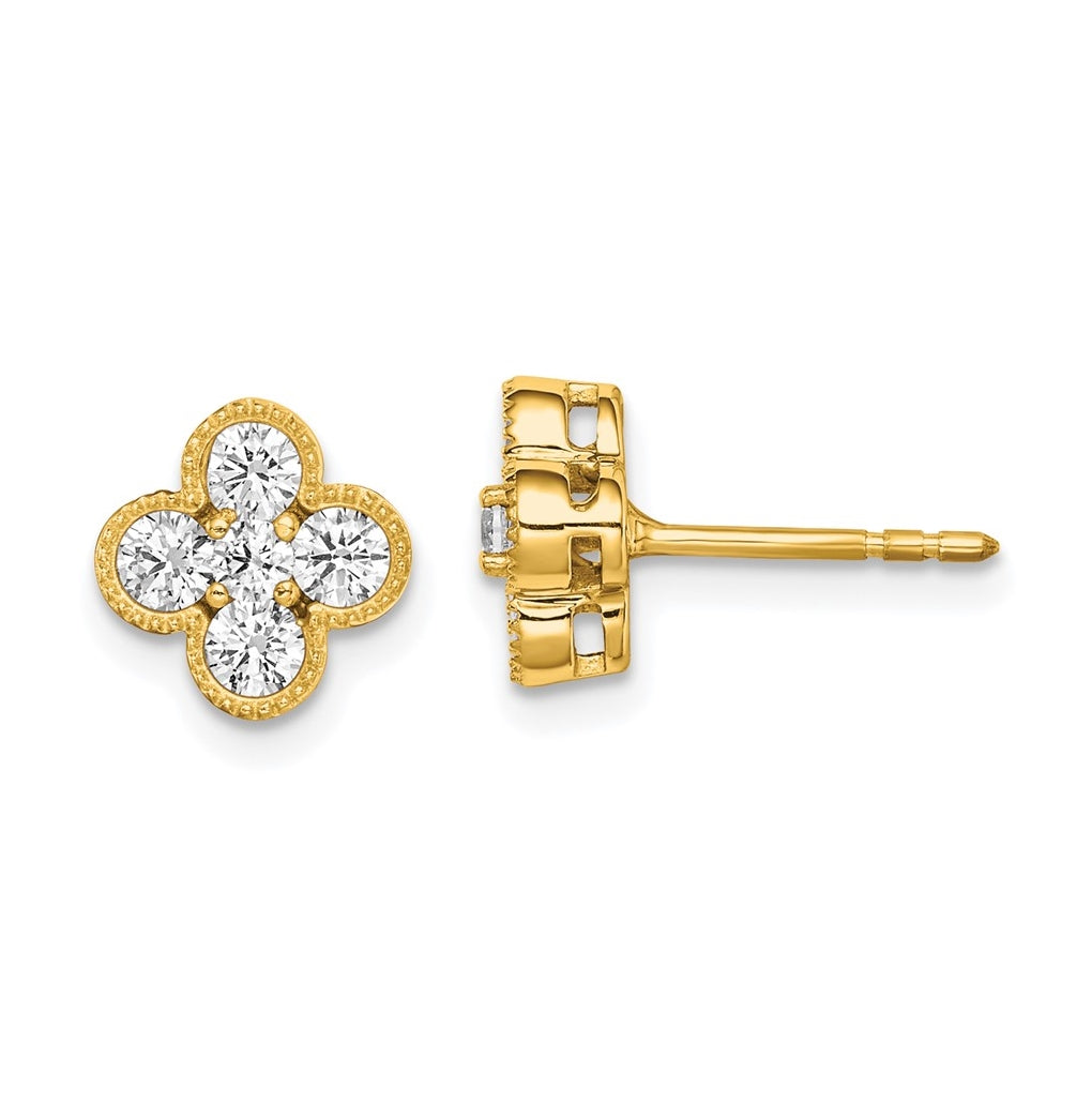 True Origin 14K Yellow Gold 3/4 carat Lab Grown Diamond VS/SI D E F Bloom Floral Post Earring