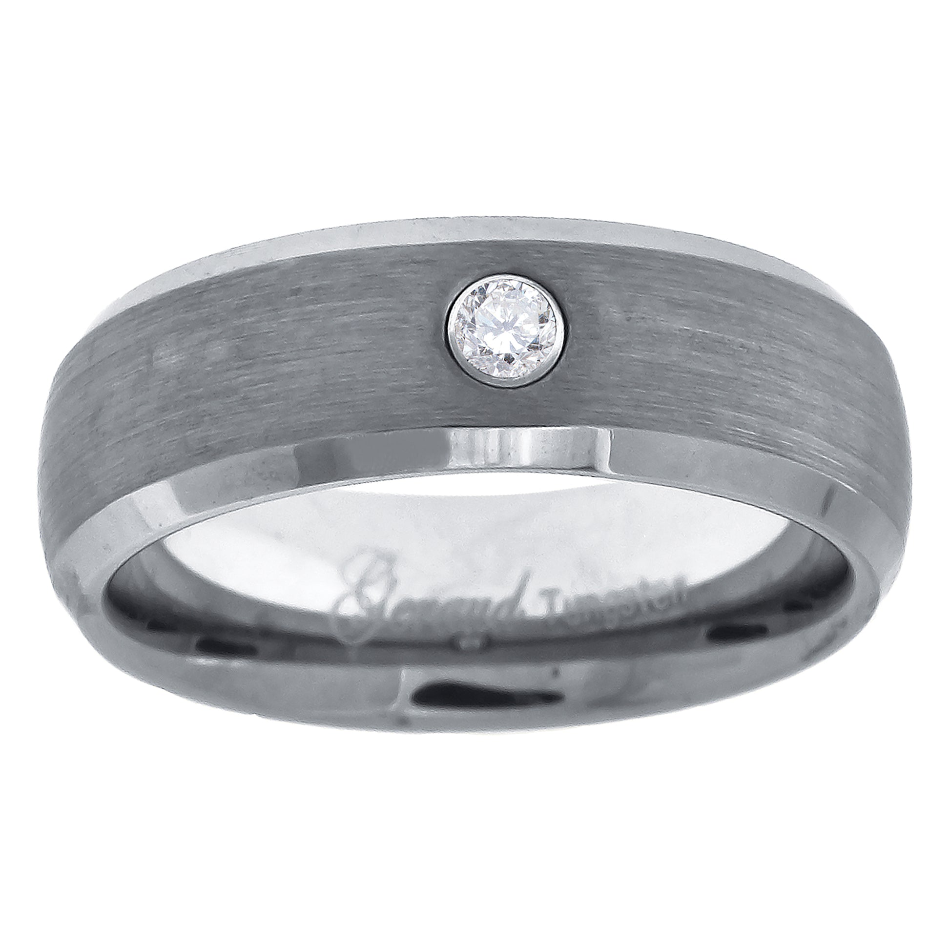 Tungsten Mens Cubic Zirconia Center Brushed Beveled Edges Comfort-fit 8mm Sizes 7 - 14 Bridal Anniversary Engagement Wedding Band