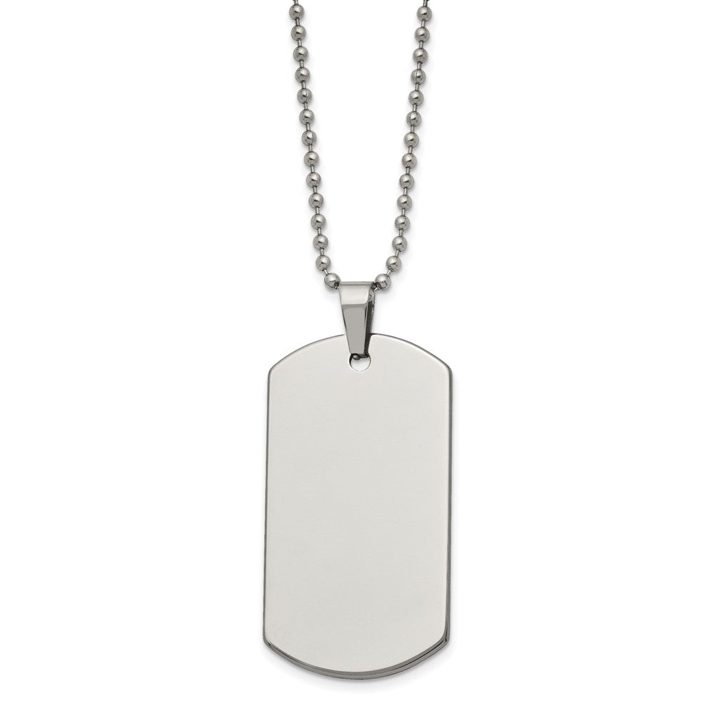 Tungsten Polished Dog Tag 24 inch Necklace Engravable Charm Pendant Jewelry Gifts (Length 24" Width 1.01")