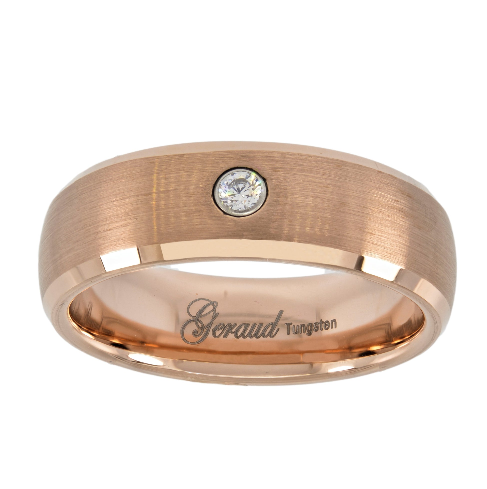 Tungsten Yellow Tone Mens Dome Brushed Cubic Zirconia Comfort-fit Bridal Anniversary Engagement Wedding Band Sizes 7 To 14