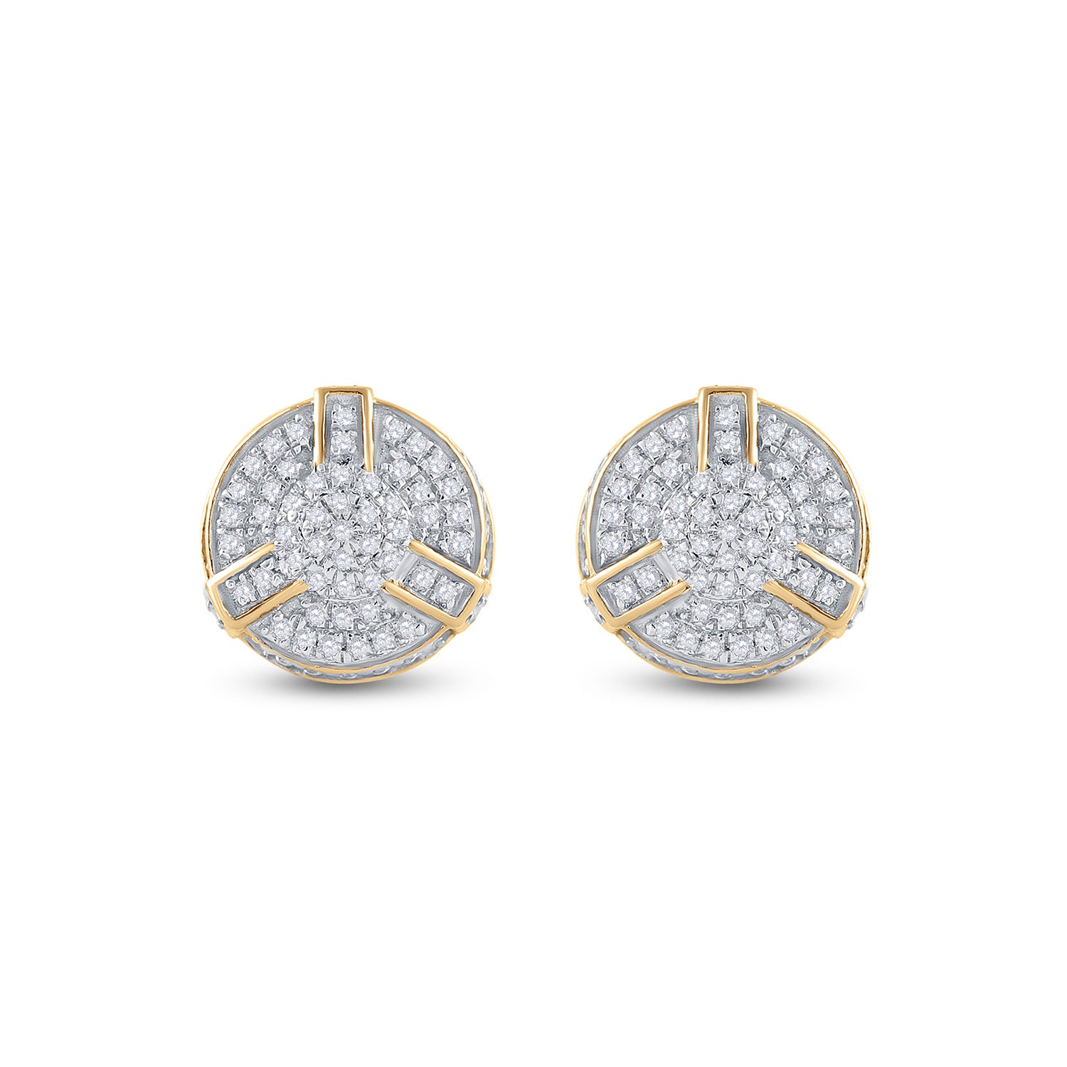Yellow-tone Sterling Silver Round Diamond 3D Disk Circle Earrings 1/4 Cttw
